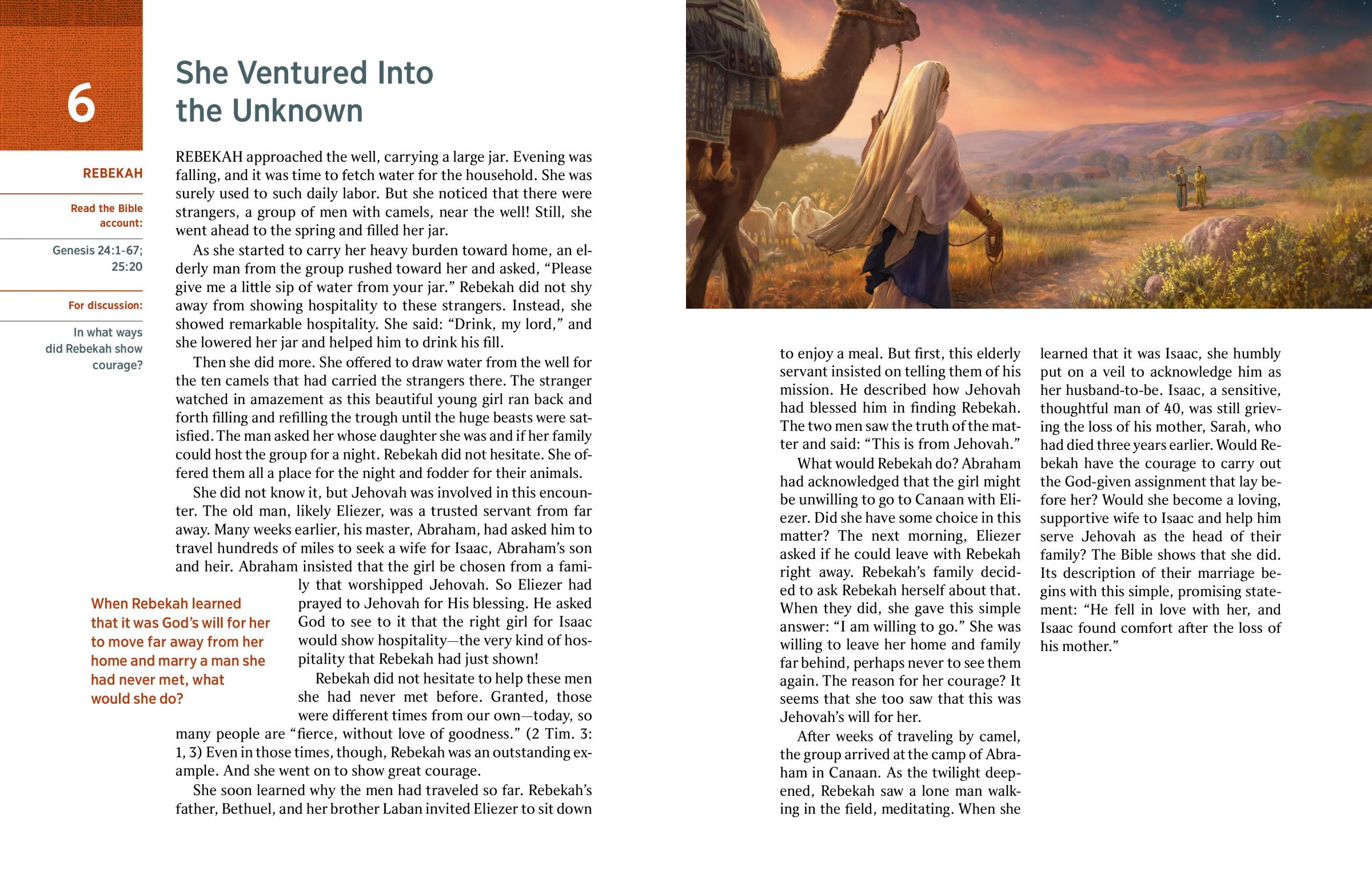 • Rebekah was diligent, generous, and respectful. In what ways can sisters imitate her today? B