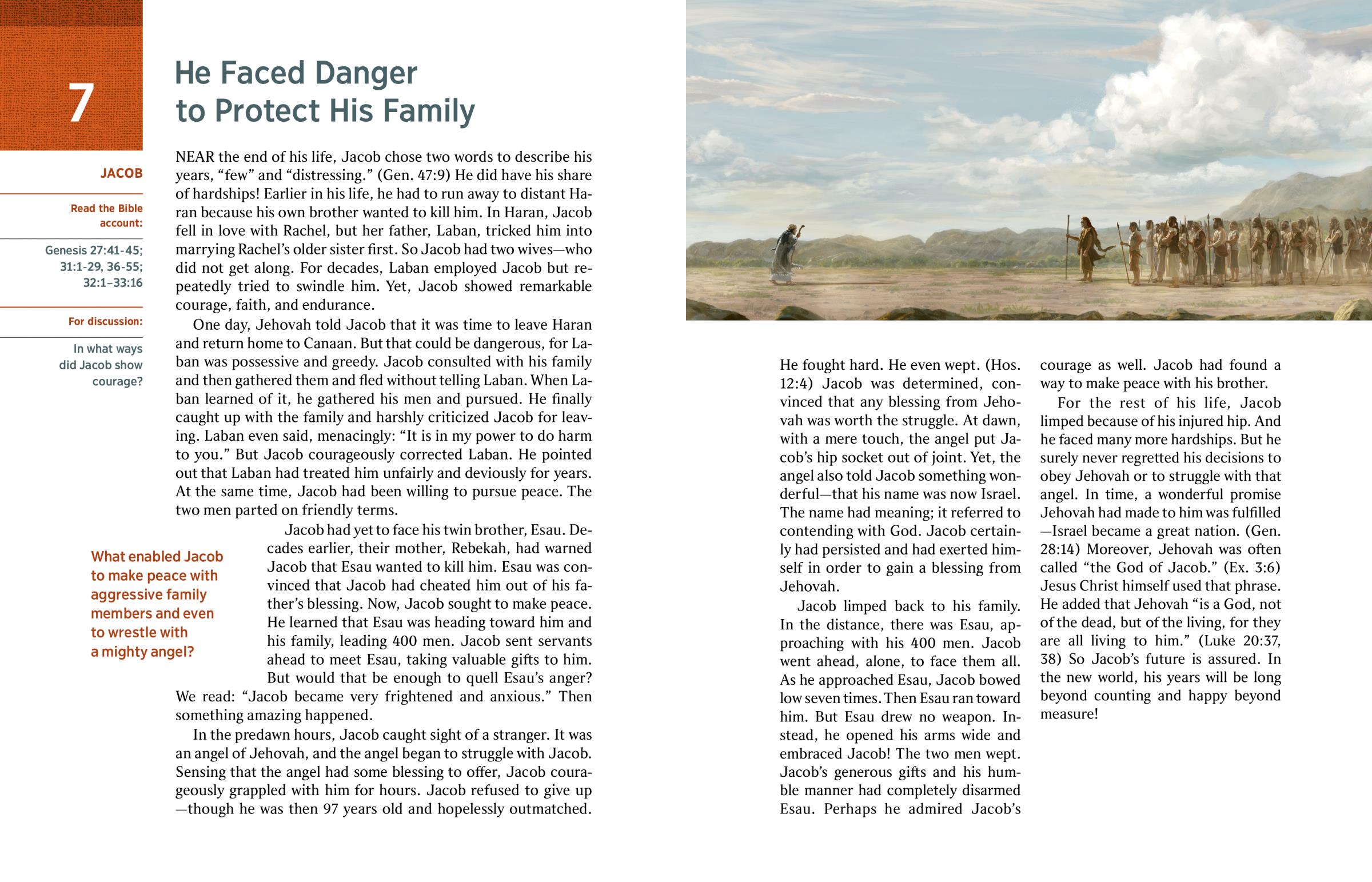 For the rest of his life, Jacob limped because of his injured hip. And he faced many more hardships. But he surely never regretted his decisions to obey Jehovah or to struggle with that angel. In time, a wonderful promise Jehovah had made to him was fulfilled—Israel became a great nation. (Gen. 28:14) Moreover, Jehovah was often called “the God of Jacob.” (Ex. 3:6) Jesus Christ himself used that phrase. He added that Jehovah “is a God, not of the dead, but of the living, for they are all living to him.” (Luke 20:37, 38) So Jacob’s future is assured. In the new world, his years will be long beyond counting and happy beyond measure!