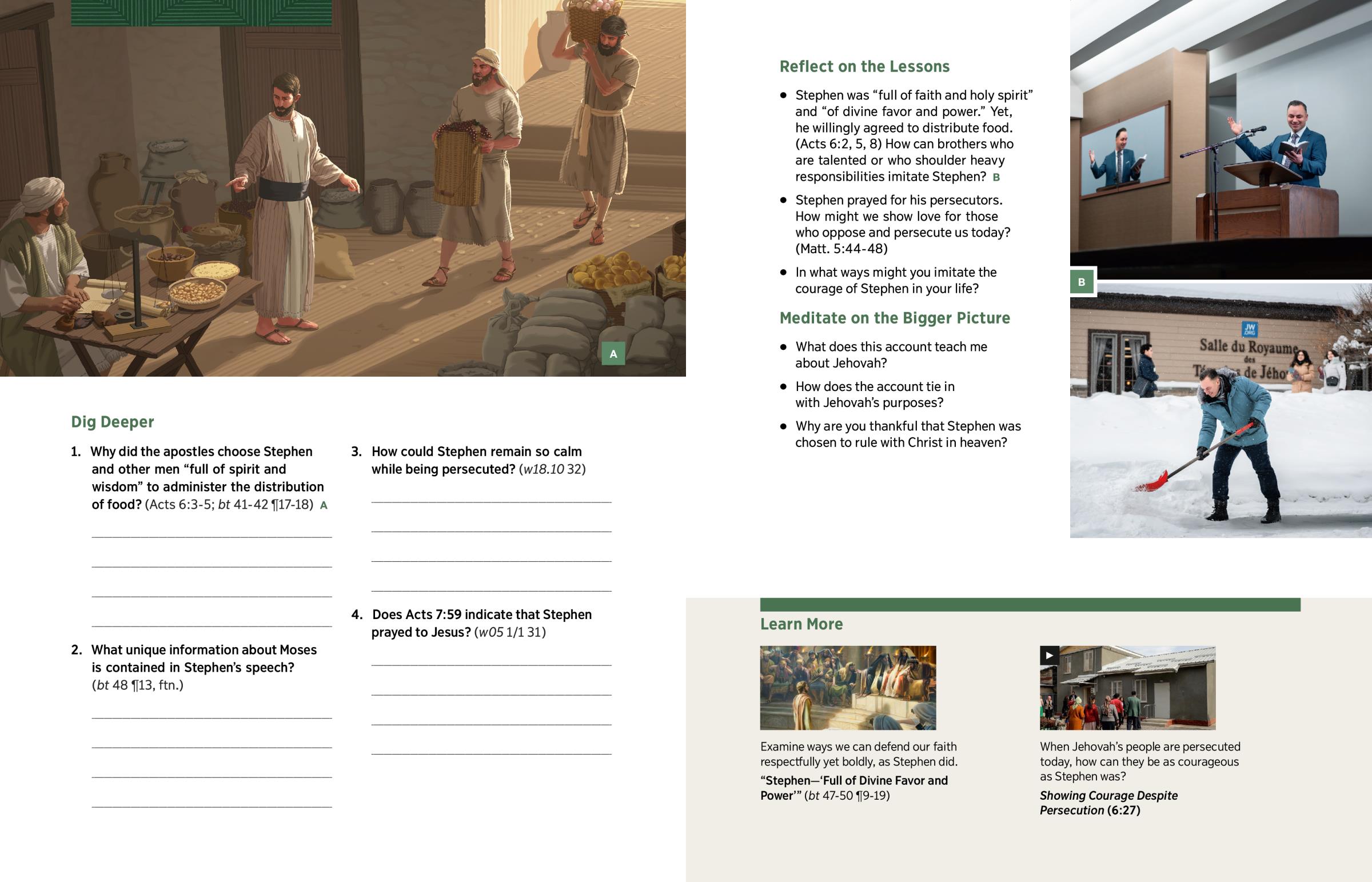1. Why did the apostles choose Stephen and other men “full of spirit and wisdom” to administer the distribution of food? (Acts 6:3-5; bt 41-42 ¶17-18) A
