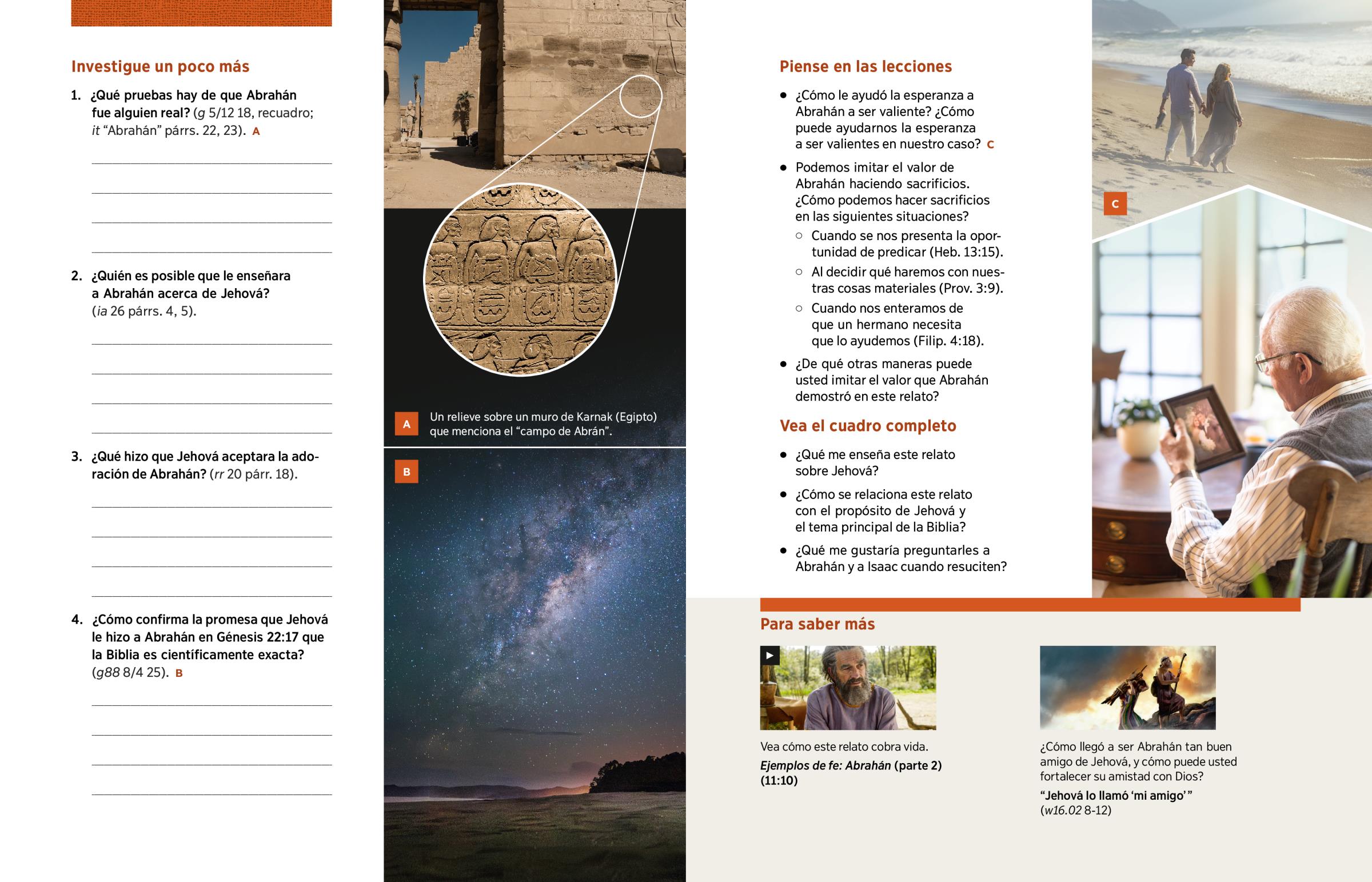 1. ¿Qué pruebas hay de que Abrahán fue alguien real? (g 5/12 18, recuadro; it “Abrahán” párrs. 22, 23). A