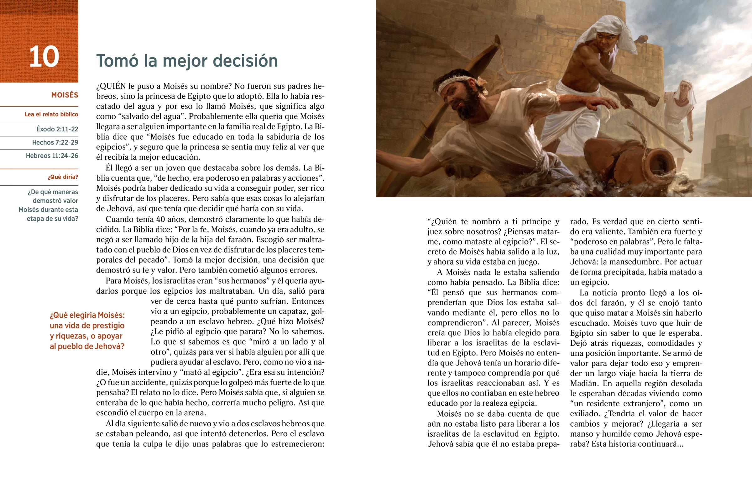 La noticia pronto llegó a los oídos del faraón, y él se enojó tanto que quiso matar a Moisés sin haberlo escuchado. Moisés tuvo que huir de Egipto sin saber lo que le esperaba. Dejó atrás riquezas, comodidades y una posición importante. Se armó de valor para dejar todo eso y emprender un largo viaje hacia la tierra de Madián. En aquella región desolada le esperaban décadas viviendo como “un residente extranjero”, como un exiliado. ¿Tendría el valor de hacer cambios y mejorar? ¿Llegaría a ser manso y humilde como Jehová esperaba? Esta historia continuará...