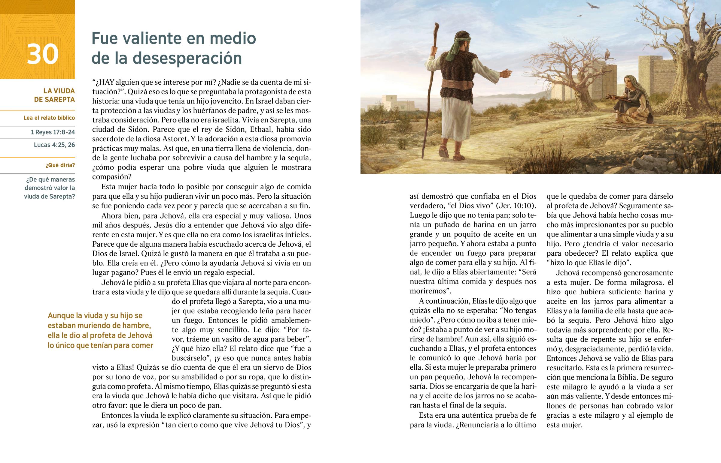 Jehová recompensó generosamente a esta mujer. De forma milagrosa, él hizo que hubiera suficiente harina y aceite en los jarros para alimentar a Elías y a la familia de ella hasta que acabó la sequía. Pero Jehová hizo algo todavía más sorprendente por ella. Resulta que de repente su hijo se enfermó y, desgraciadamente, perdió la vida. Entonces Jehová se valió de Elías para resucitarlo. Esta es la primera resurrección que menciona la Biblia. De seguro este milagro le ayudó a la viuda a ser aún más valiente. Y desde entonces millones de personas han cobrado valor gracias a este milagro y al ejemplo de esta mujer.