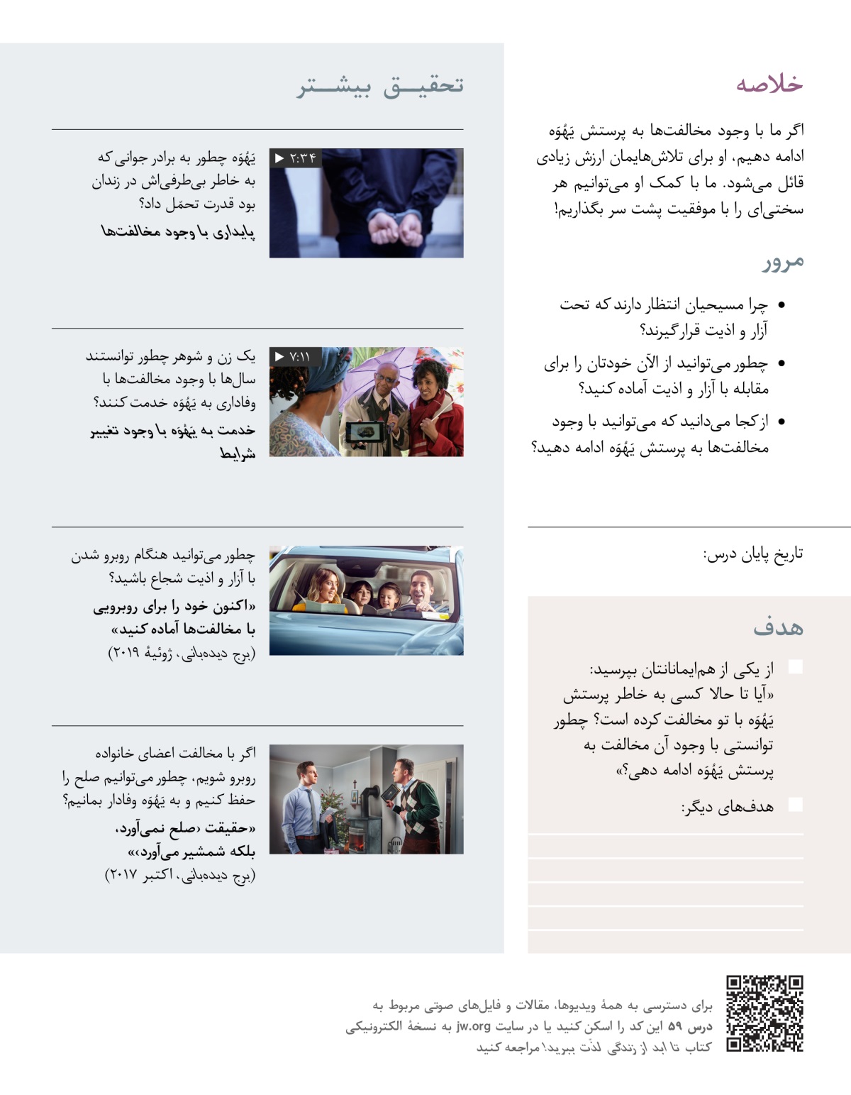 در این درس میبینیم که میتوانیم با وجود مخالفتها به یَهُوَه وفادار بمانیم و او به این کارمان پاداش میدهد.