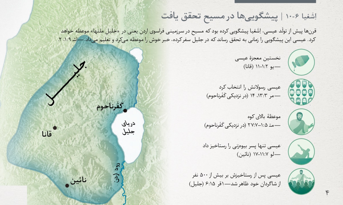 قرنها پیش از تولّد عیسی، اِشَعْیا پیشگویی کرده بود که مسیح در سرزمینی فراسوی اردن یعنی در «جَلیلِ ملتها» موعظه خواهد کرد. عیسی این پیشگویی را زمانی به تحقق رساند که در جلیل سفر کرده، خبر خوش را موعظه میکرد و تعلیم میداد.—اش ۹:۱، ۲.