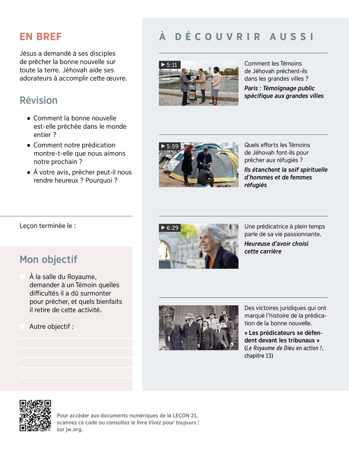 Les Témoins de Jéhovah font beaucoup d’efforts pour prêcher la bonne nouvelle à tout le monde. Regarder la VIDÉO et discuter de la question qui suit.