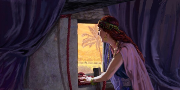 Jeriko oli Rahabin kotikaupunki, ja hän tunsi hyvin sen kadut ja talot sekä vilkkaat torit ja kauppapaikat. Vielä tutumpia hänelle olivat sen asukkaat, ja hän saattoi aistia heidän pelkonsa kasvavan päivä päivältä, kun israelilaiset jatkoivat outoa rituaaliaan: jokapäiväistä marssia kertaalleen kaupungin ympäri. Heidän torviensa äänen kajahdellessa Jerikon kujilla ja aukioilla Rahab ei kuitenkaan ollut samanlaisen pelon ja epätoivon vallassa kuin maanmiehensä.
