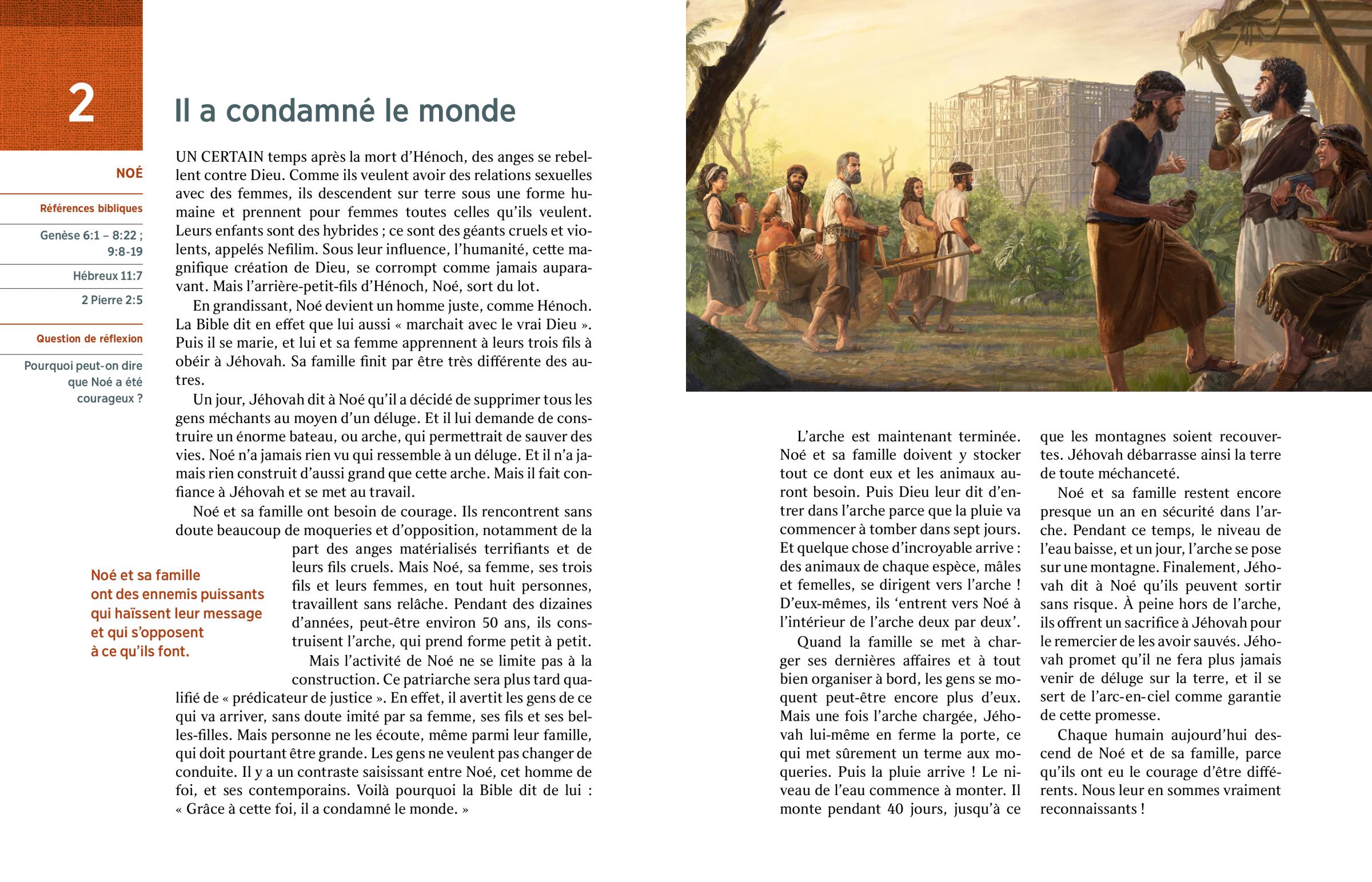 En grandissant, Noé devient un homme juste, comme Hénoch. La Bible dit en effet que lui aussi « marchait avec le vrai Dieu ». Puis il se marie, et lui et sa femme apprennent à leurs trois fils à obéir à Jéhovah. Sa famille finit par être très différente des autres.