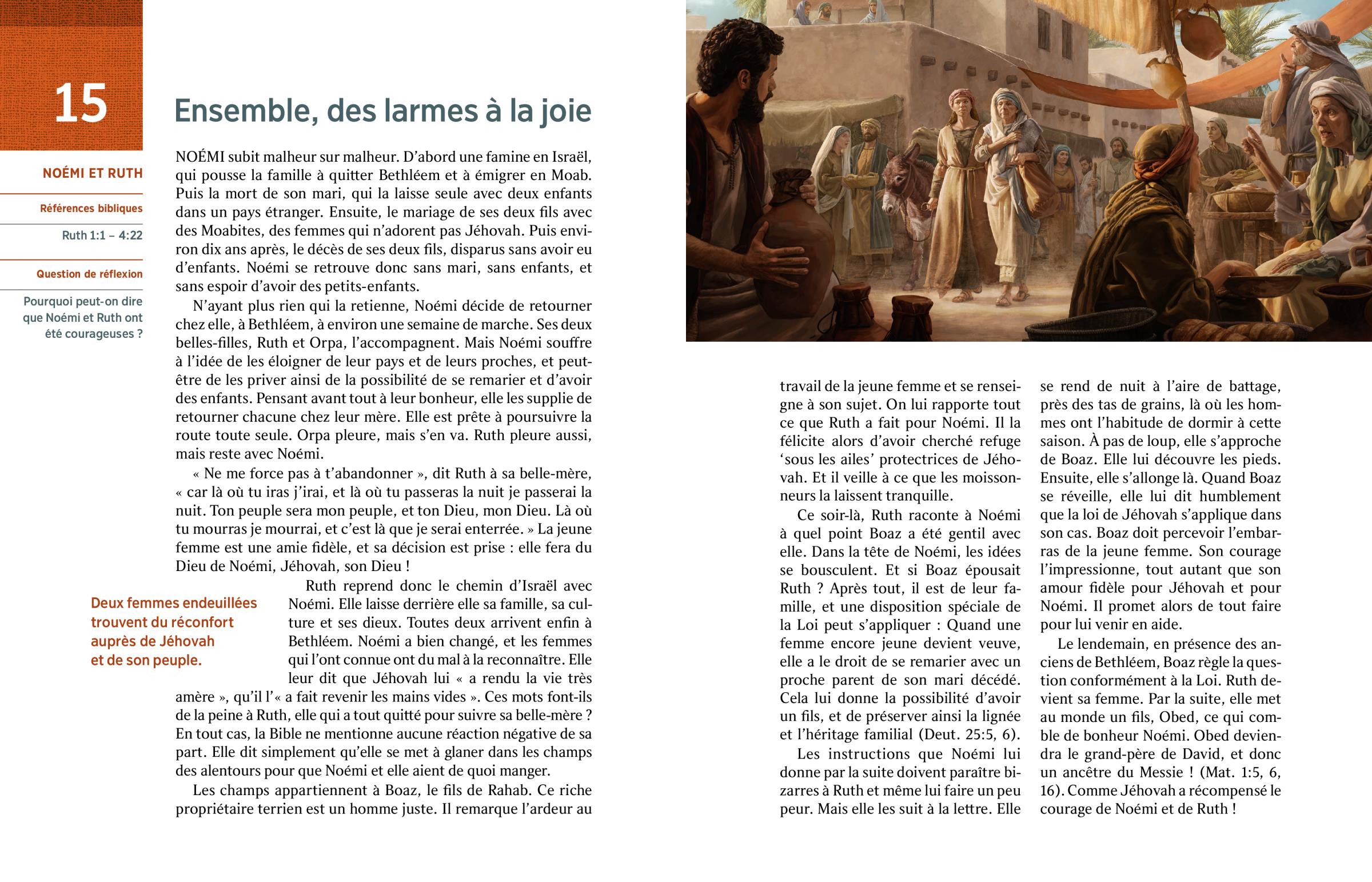 « Ne me force pas à t’abandonner », dit Ruth à sa belle-mère, « car là où tu iras j’irai, et là où tu passeras la nuit je passerai la nuit. Ton peuple sera mon peuple, et ton Dieu, mon Dieu. Là où tu mourras je mourrai, et c’est là que je serai enterrée. » La jeune femme est une amie fidèle, et sa décision est prise : elle fera du Dieu de Noémi, Jéhovah, son Dieu !