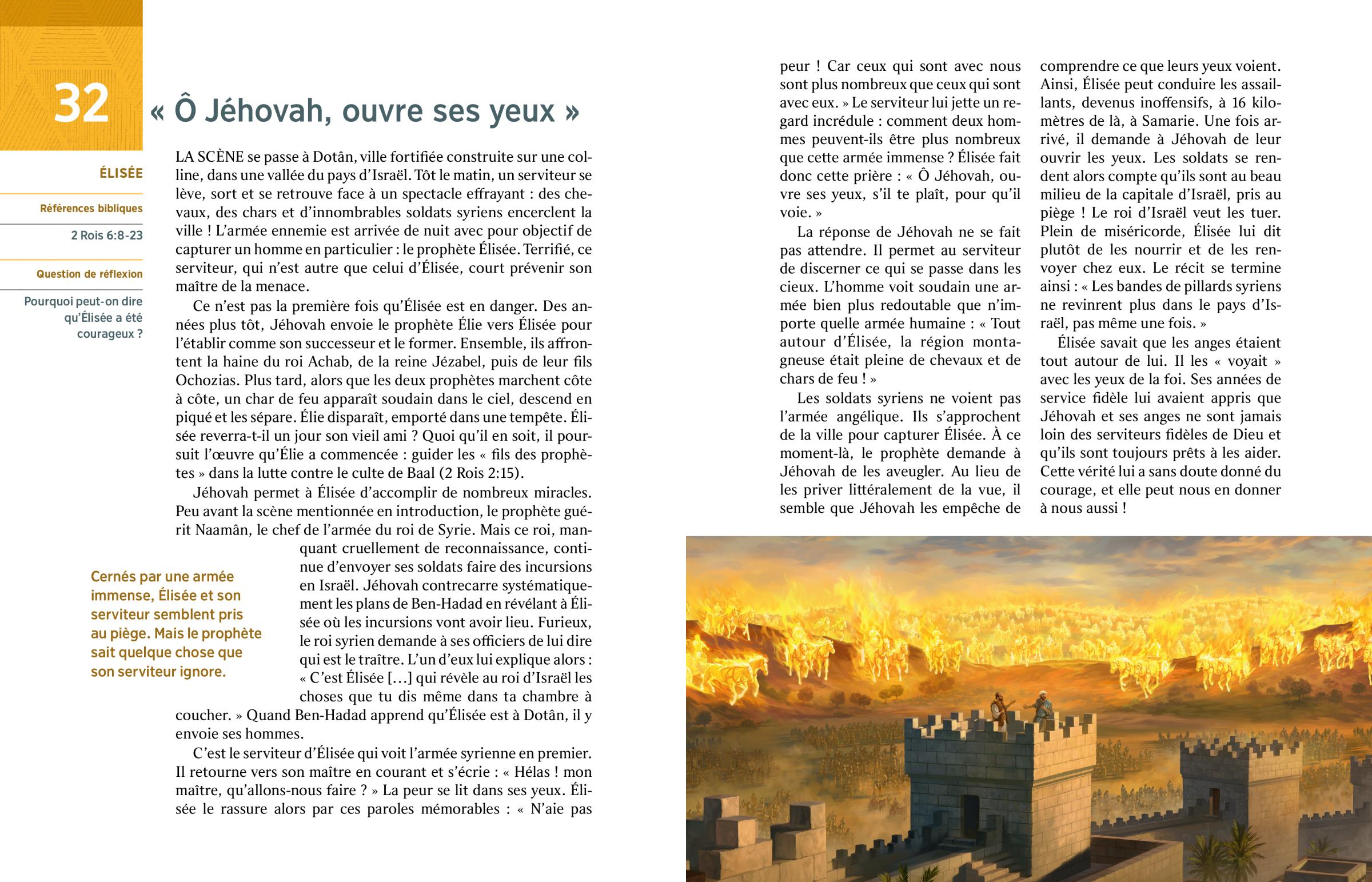 Élisée savait que les anges étaient tout autour de lui. Il les « voyait » avec les yeux de la foi. Ses années de service fidèle lui avaient appris que Jéhovah et ses anges ne sont jamais loin des serviteurs fidèles de Dieu et qu’ils sont toujours prêts à les aider. Cette vérité lui a sans doute donné du courage, et elle peut nous en donner à nous aussi !