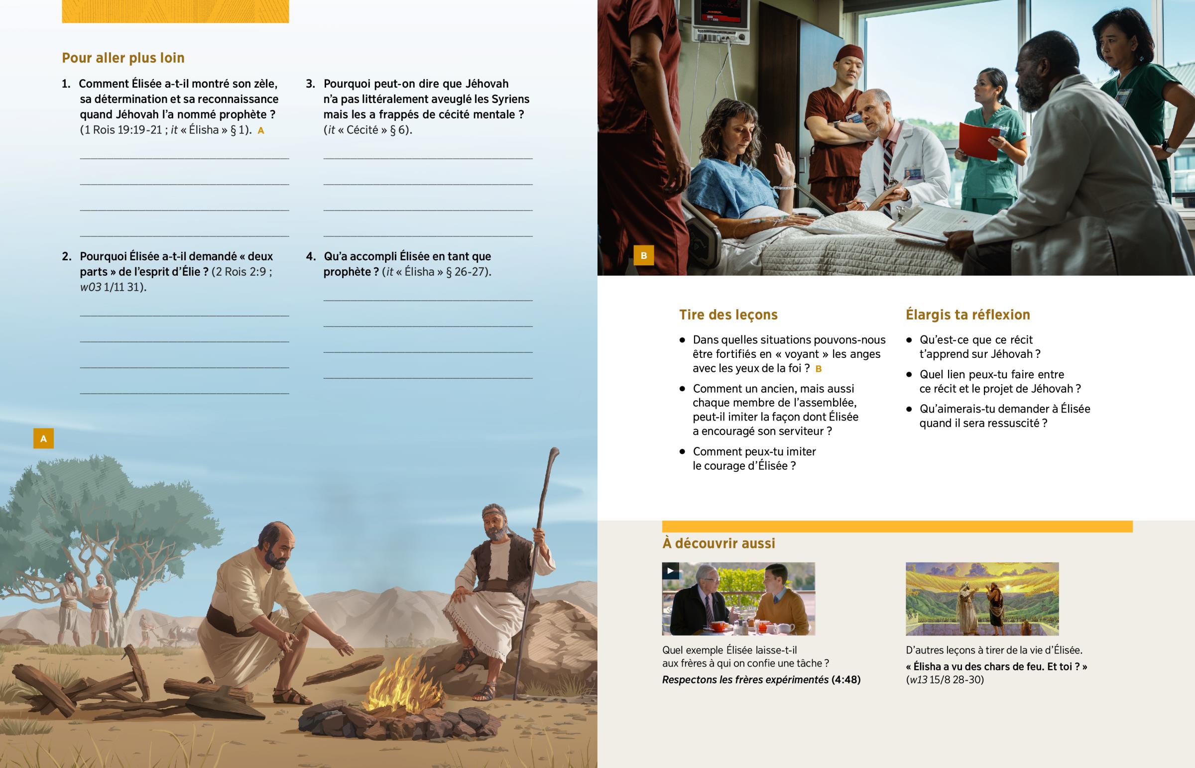 1. Comment Élisée a-t-il montré son zèle, sa détermination et sa reconnaissance quand Jéhovah l’a nommé prophète ? (1 Rois 19:19-21 ; it « Élisha » no 1 § 1). A