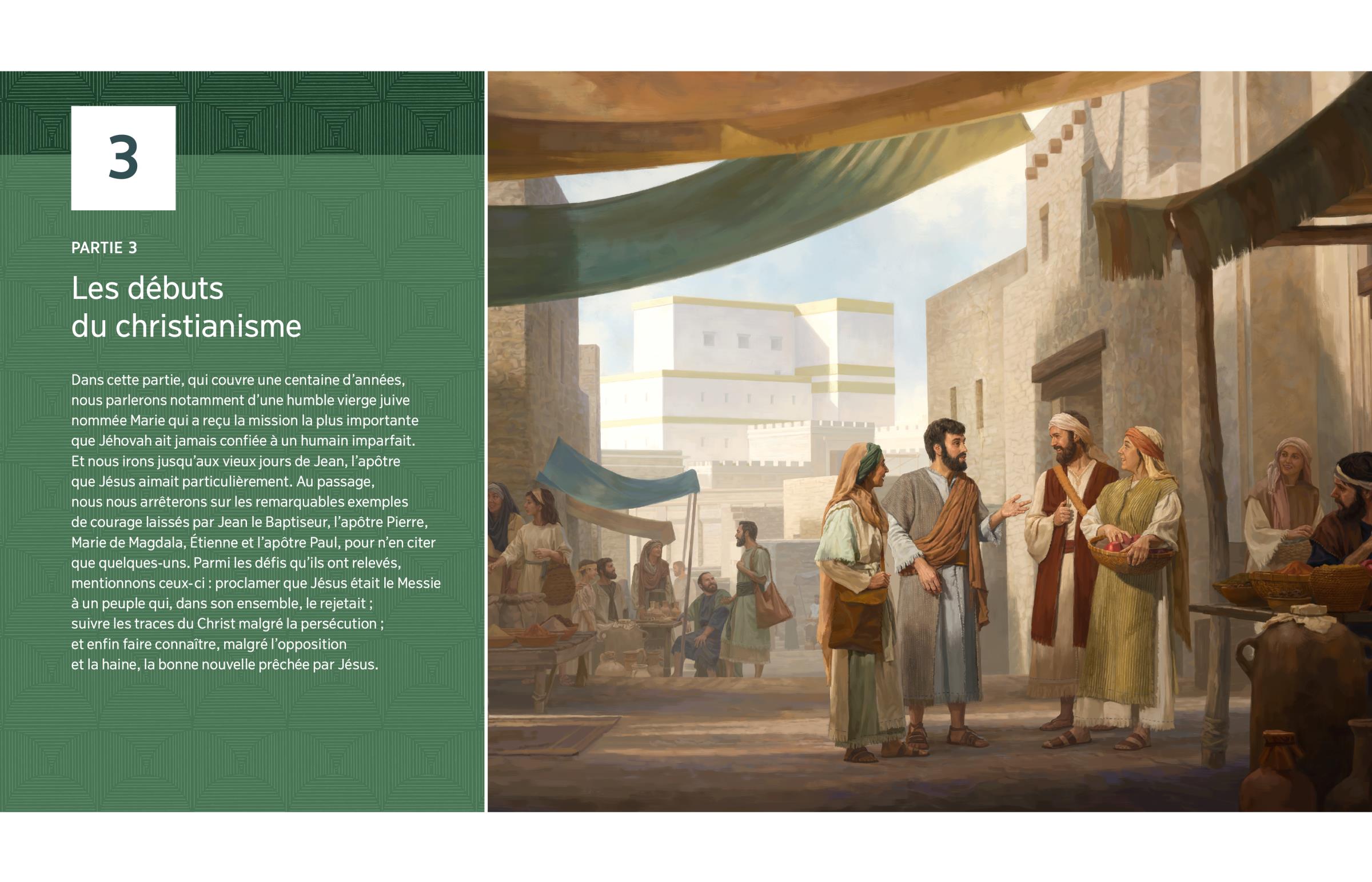 Dans cette partie, qui couvre une centaine d’années, nous parlerons notamment d’une humble vierge juive nommée Marie qui a reçu la mission la plus importante que Jéhovah ait jamais confiée à un humain imparfait. Et nous irons jusqu’aux vieux jours de Jean, l’apôtre que Jésus aimait particulièrement. Au passage, nous nous arrêterons sur les remarquables exemples de courage laissés par Jean le Baptiseur, l’apôtre Pierre, Marie de Magdala, Étienne et l’apôtre Paul, pour n’en citer que quelques-uns. Parmi les défis qu’ils ont relevés, mentionnons ceux-ci : proclamer que Jésus était le Messie à un peuple qui, dans son ensemble, le rejetait ; suivre les traces du Christ malgré la persécution ; et enfin faire connaître, malgré l’opposition et la haine, la bonne nouvelle prêchée par Jésus.