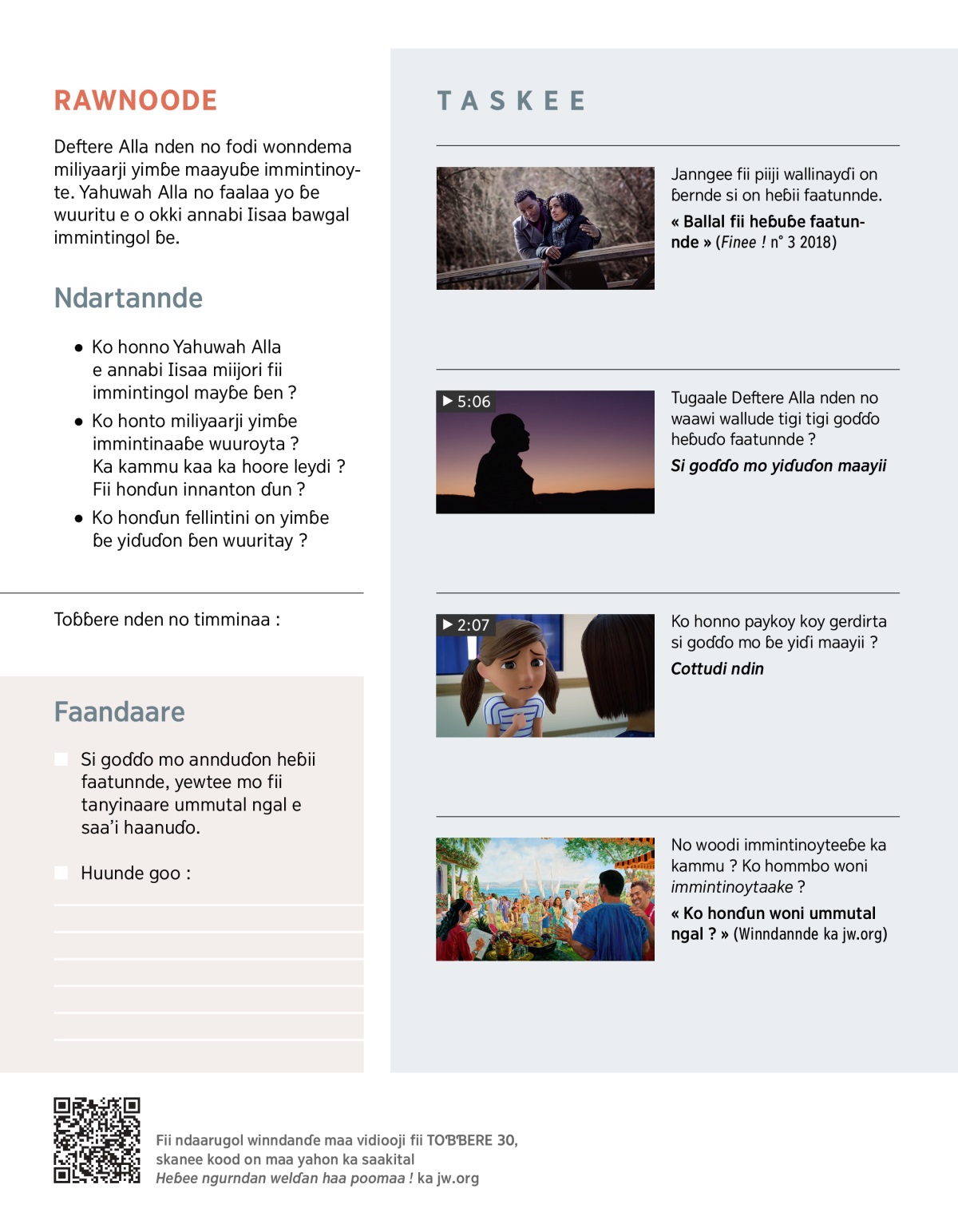 Mayde adday mettu-ɓernde ko tiiɗi. Ko sabu ɗun Deftere Alla nden noddi mayde gaɲo (1 Korenti 15:26). Ka toɓɓere 27, on jannguno wonndema Yahuwah Alla muloyay on gaɲo. Kono ko honɗun o waɗoyta fii maayuɓe ɓen ? E nder ndee toɓɓere, on ɓeyday janngugol fii fodoore Yahuwah Alla fotunde fii immintingol miliyaarji yimɓe fii no ɓe heɓira ngurndan welɗan haa poomaa. Ko fii Yahuwah Alla immintinoyay ɓe ! Dun no waawi waɗude tigi tigi ? Mayɓe ɓen immintinoyte ka kammu kaa ka hoore leydi ?