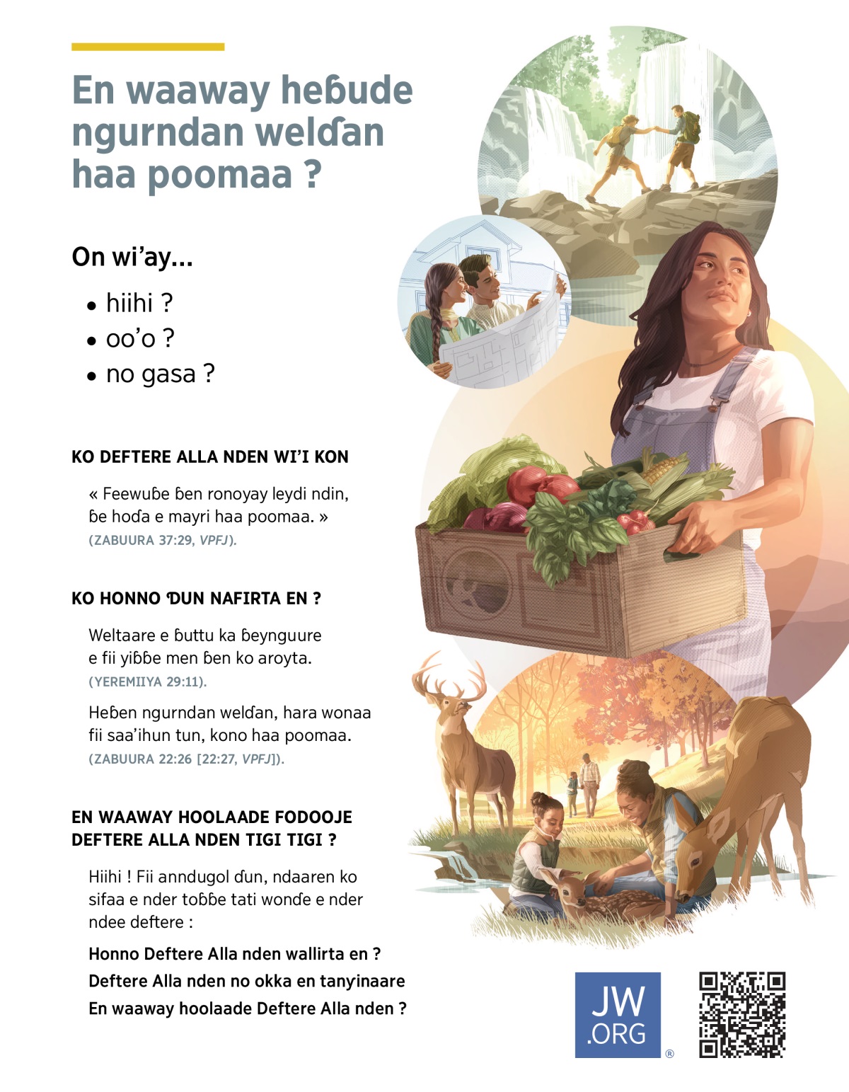 « Feewuɓe ɓen ronoyay leydi ndin, ɓe hoɗa e mayri haa poomaa. » (ZABUURA 37:29, VPFJ).