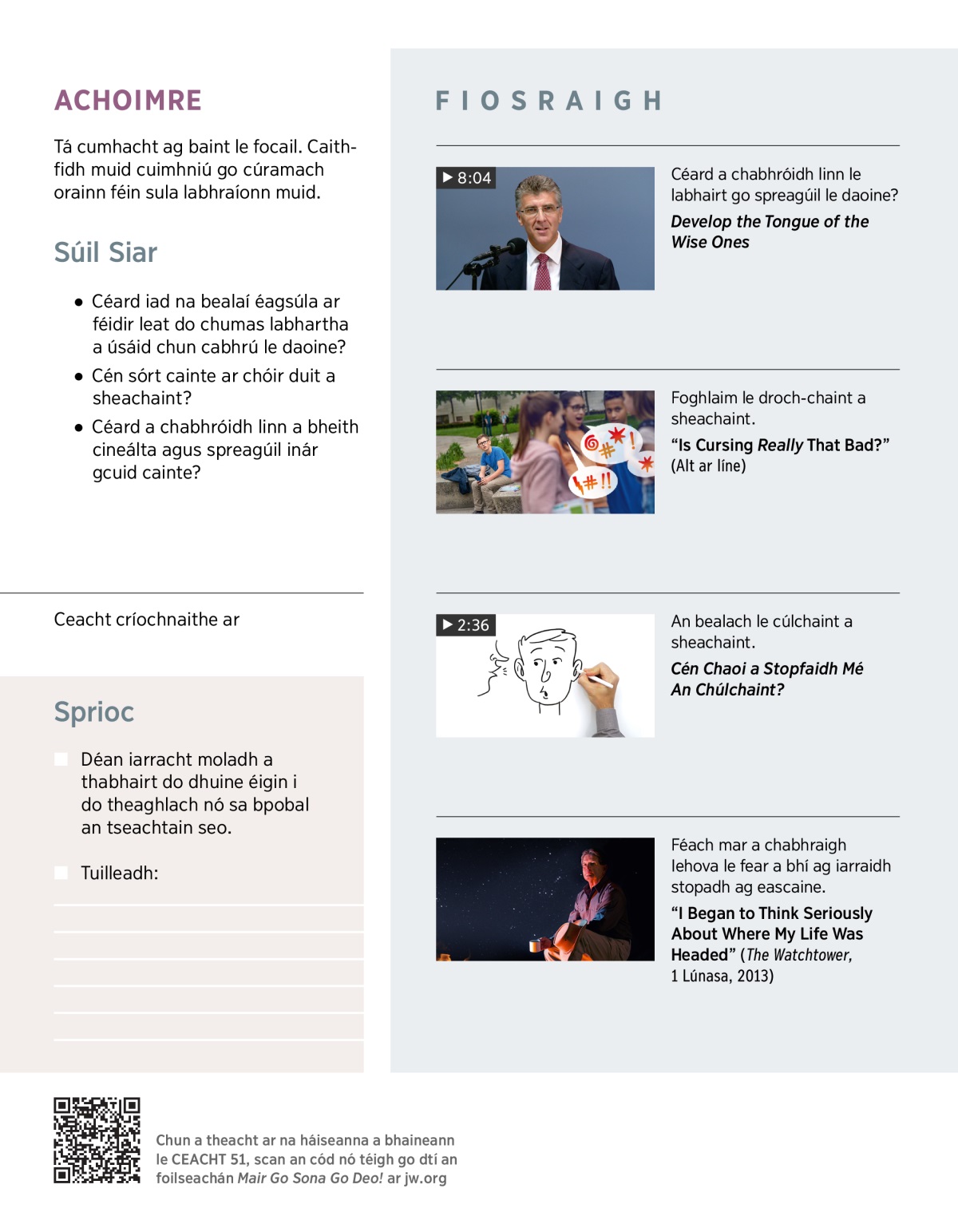 3. Céard a chabhróidh linn labhairt ar bhealach spreagúil?