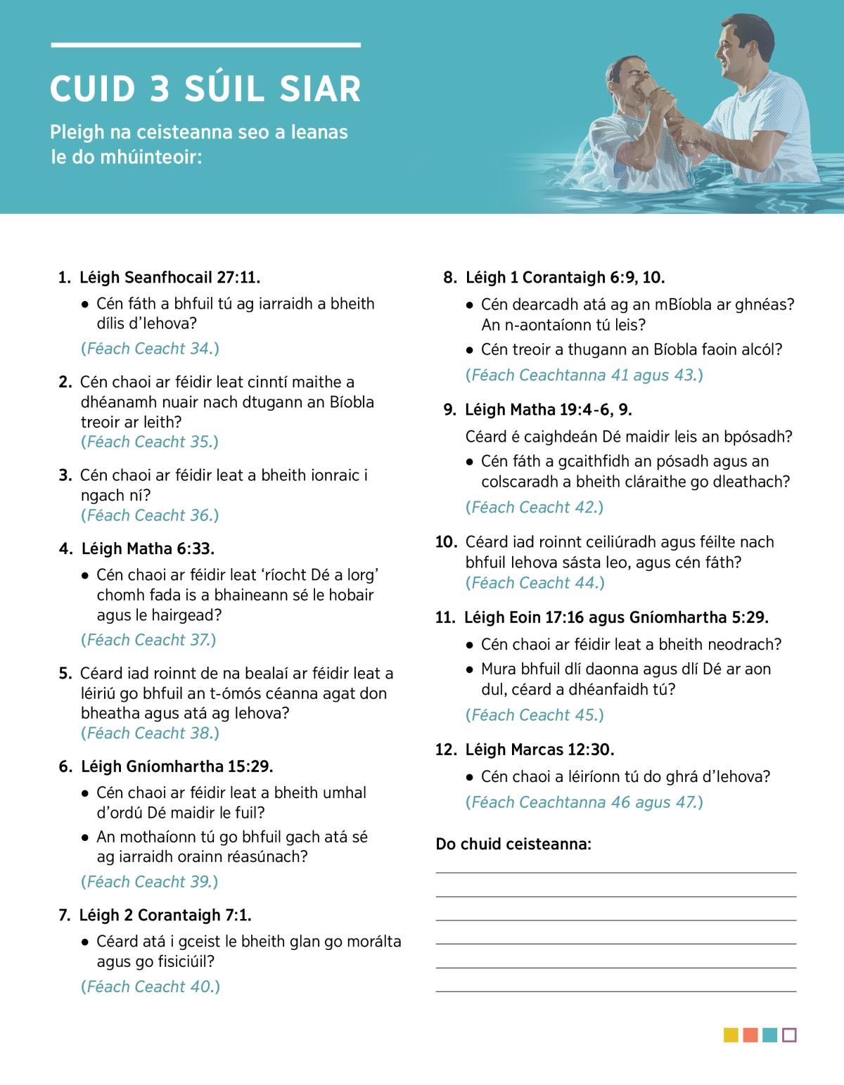 Pleigh na ceisteanna seo a leanas le do mhúinteoir: