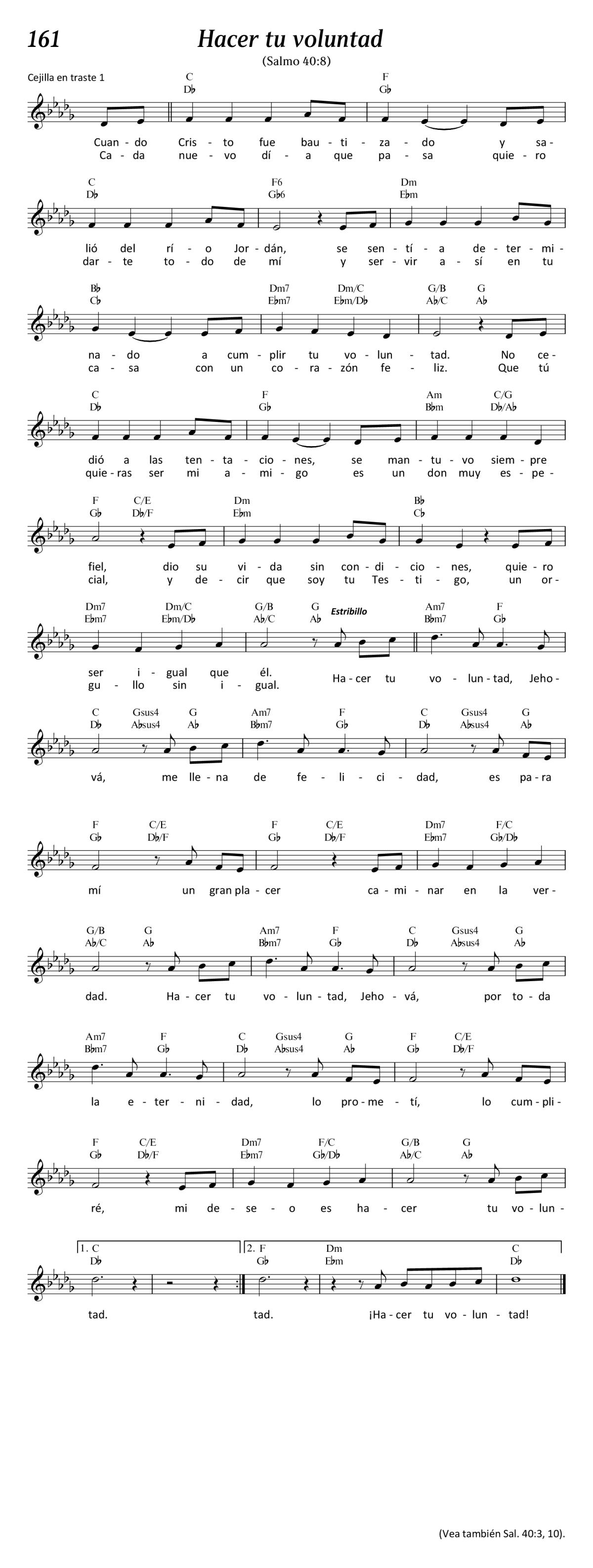 - 1. Cuando Cristo fue bautizado - y salió del río Jordán, - se sentía determinado - a cumplir tu voluntad. - No cedió a las tentaciones, - se mantuvo siempre fiel, - dio su vida sin condiciones, - quiero ser igual que él. - (ESTRIBILLO) - Hacer tu voluntad, Jehová, - me llena de felicidad, - es para mí un gran placer - caminar en la verdad. - Hacer tu voluntad, Jehová, - por toda la eternidad, - lo prometí, lo cumpliré, - mi deseo es hacer - tu voluntad.