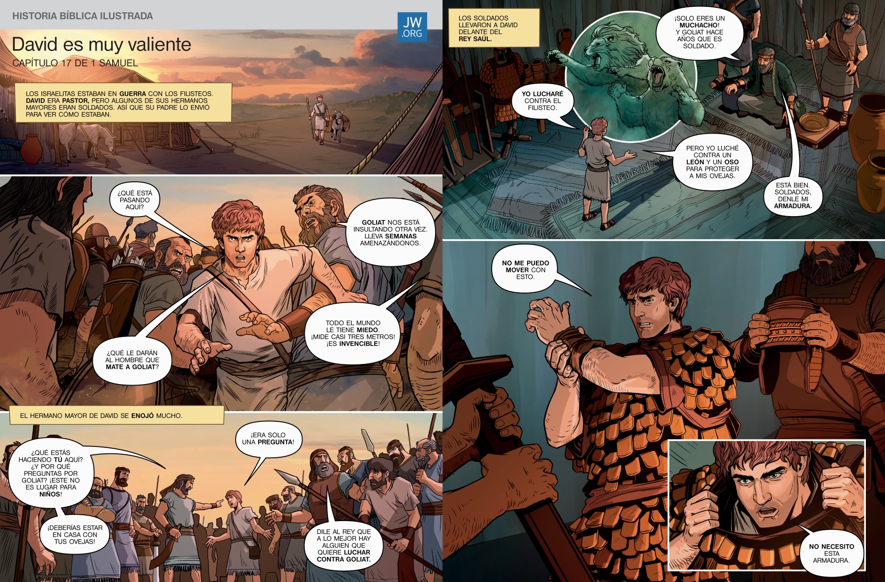 Un muchacho llamado David confió en Jehová, fue valiente y ganó a un gigante.