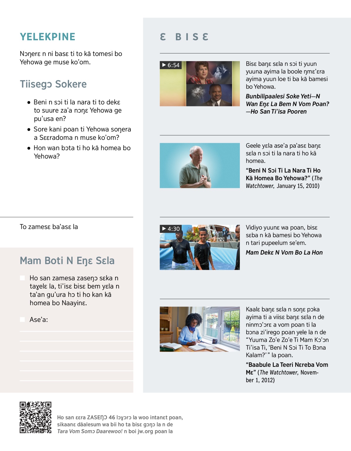 “Beni N Sɔi Ti La Nara Ti Ho Kã Homea Bo Yehowa?” (The Watchtower, January 15, 2010)