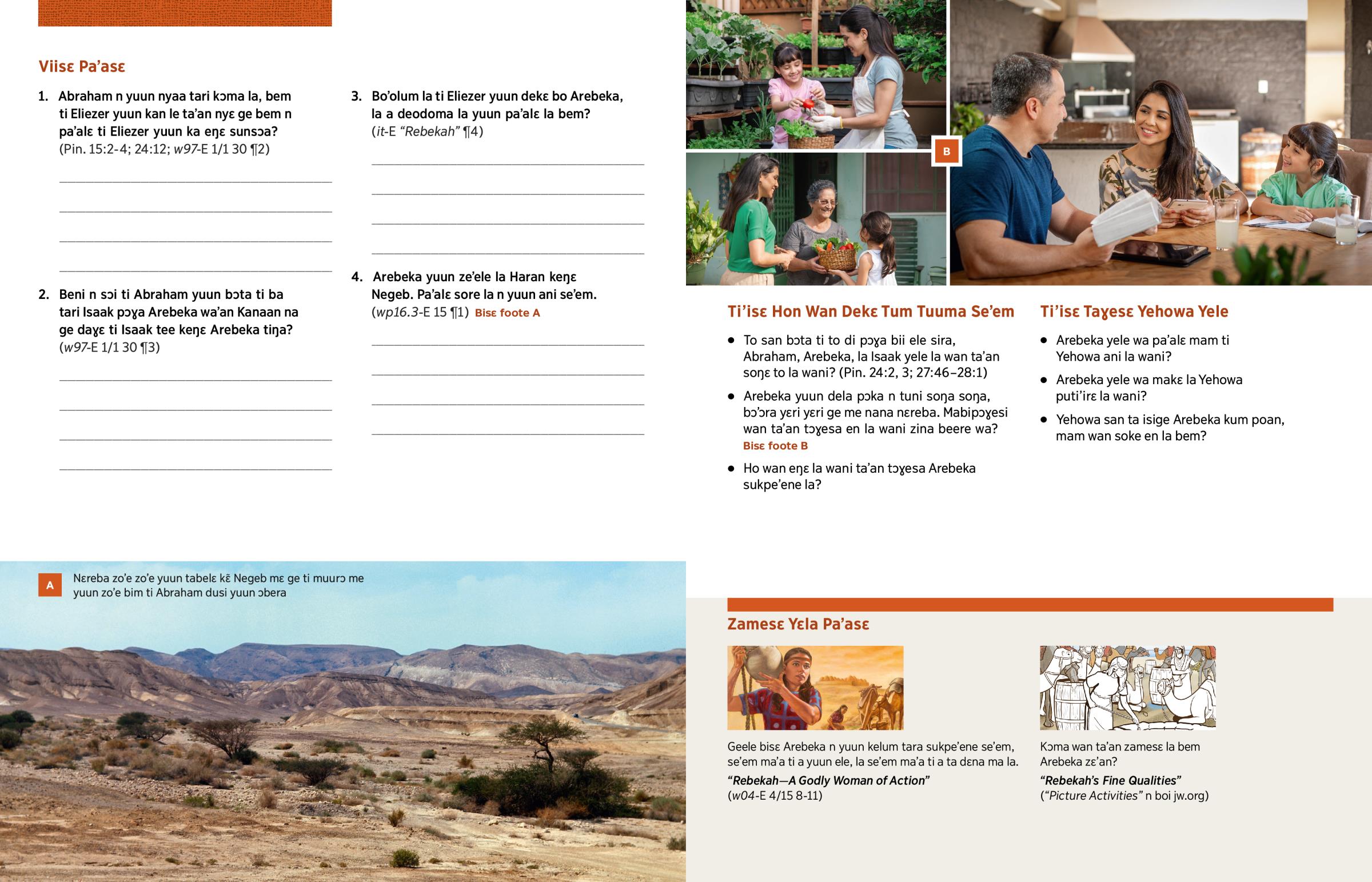 4. Arebeka yuun ze’ele la Haran keŋɛ Negeb. Pa’alɛ sore la n yuun ani se’em. (wp16.3-E 15 ¶1) Bisɛ foote A