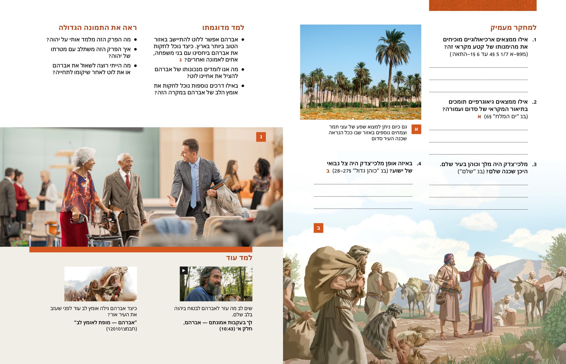 אברהם אפשר ללוט להתיישב באזור הטוב ביותר בארץ. כיצד נוכל לחקות את אברהם ביחסינו עם בני משפחה, אחים לאמונה ואחרים? ג