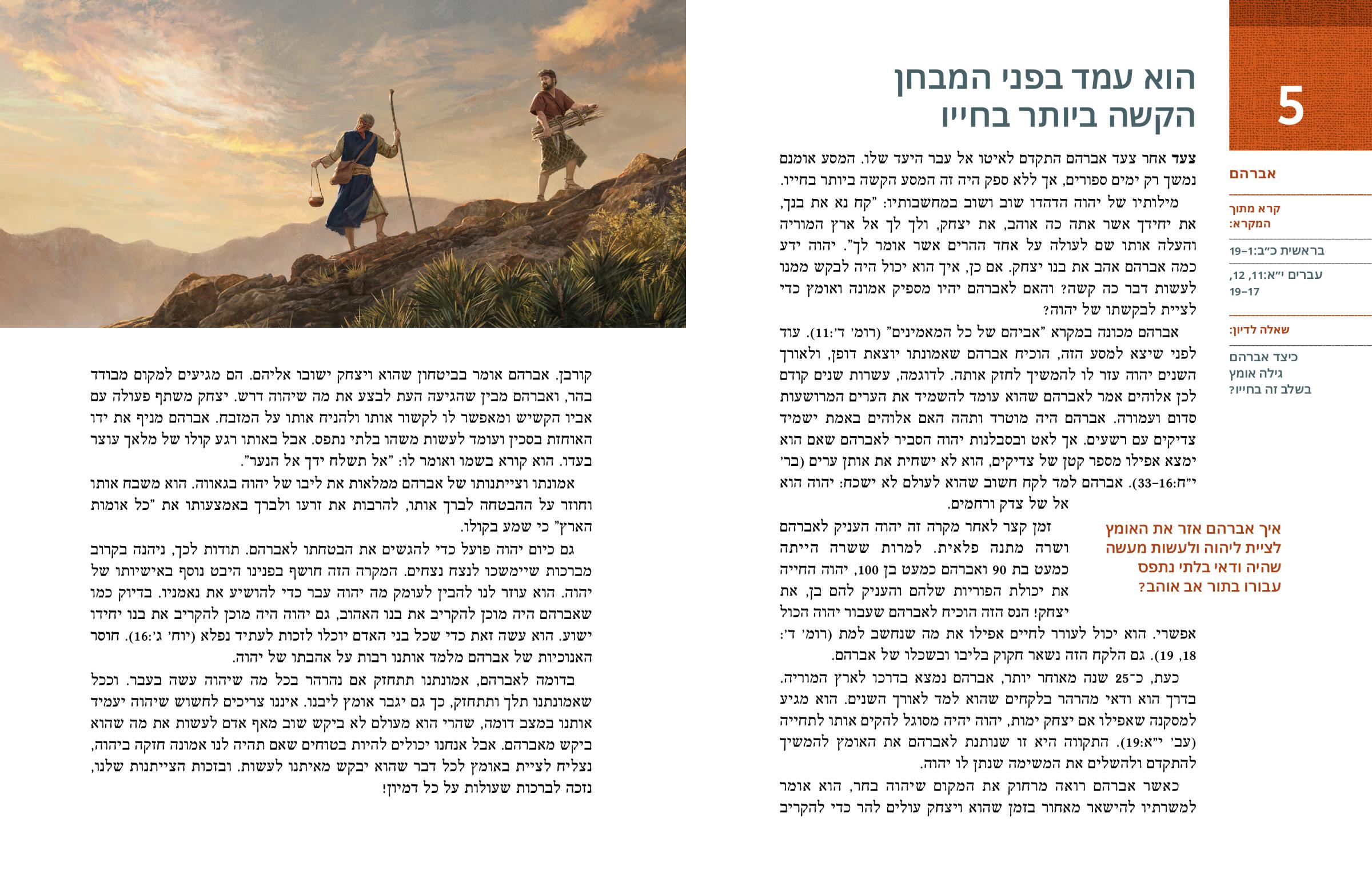 אברהם מכונה במקרא ”‏אביהם של כל המאמינים”‏ (‏רומ׳ ד׳:‏11‏)‏.‏ עוד לפני שיצא למסע הזה,‏ הוכיח אברהם שאמונתו יוצאת דופן,‏ ולאורך השנים יהוה עזר לו להמשיך לחזק אותה.‏ לדוגמה,‏ עשרות שנים קודם לכן אלוהים אמר לאברהם שהוא עומד להשמיד את הערים המרושעות סדום ועמורה.‏ אברהם היה מוטרד ותהה האם אלוהים באמת ישמיד צדיקים עם רשעים.‏ אך לאט ובסבלנות יהוה הסביר לאברהם שאם הוא ימצא אפילו מספר קטן של צדיקים,‏ הוא לא ישחית את אותן ערים (‏בר׳ י״ח:‏16–33‏)‏.‏ אברהם למד לקח חשוב שהוא לעולם לא ישכח:‏ יהוה הוא אל של צדק ורחמים.‏