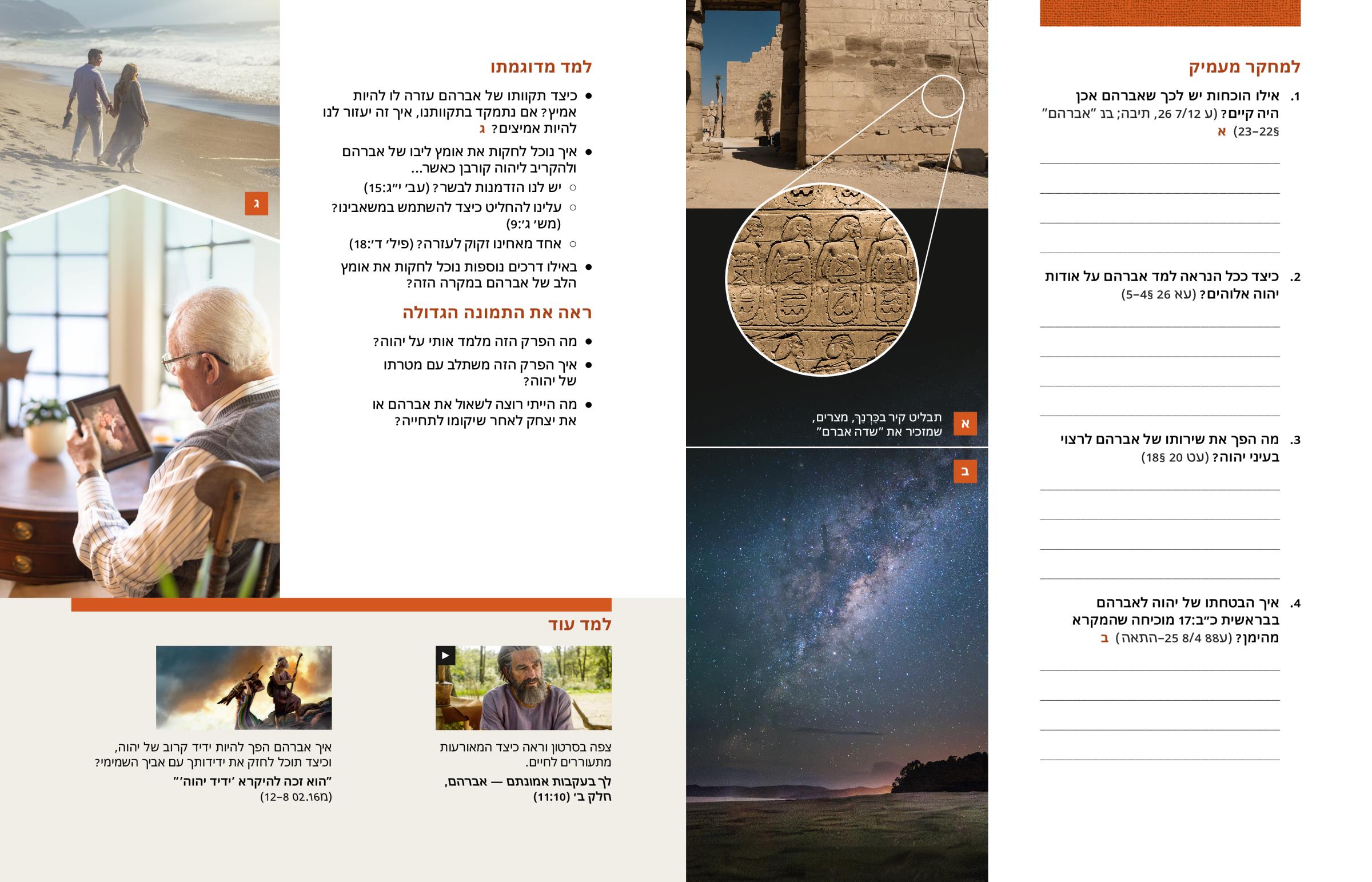 • כיצד תקוותו של אברהם עזרה לו להיות אמיץ?‏ אם נתמקד בתקוותנו,‏ איך זה יעזור לנו להיות אמיצים?‏ ג