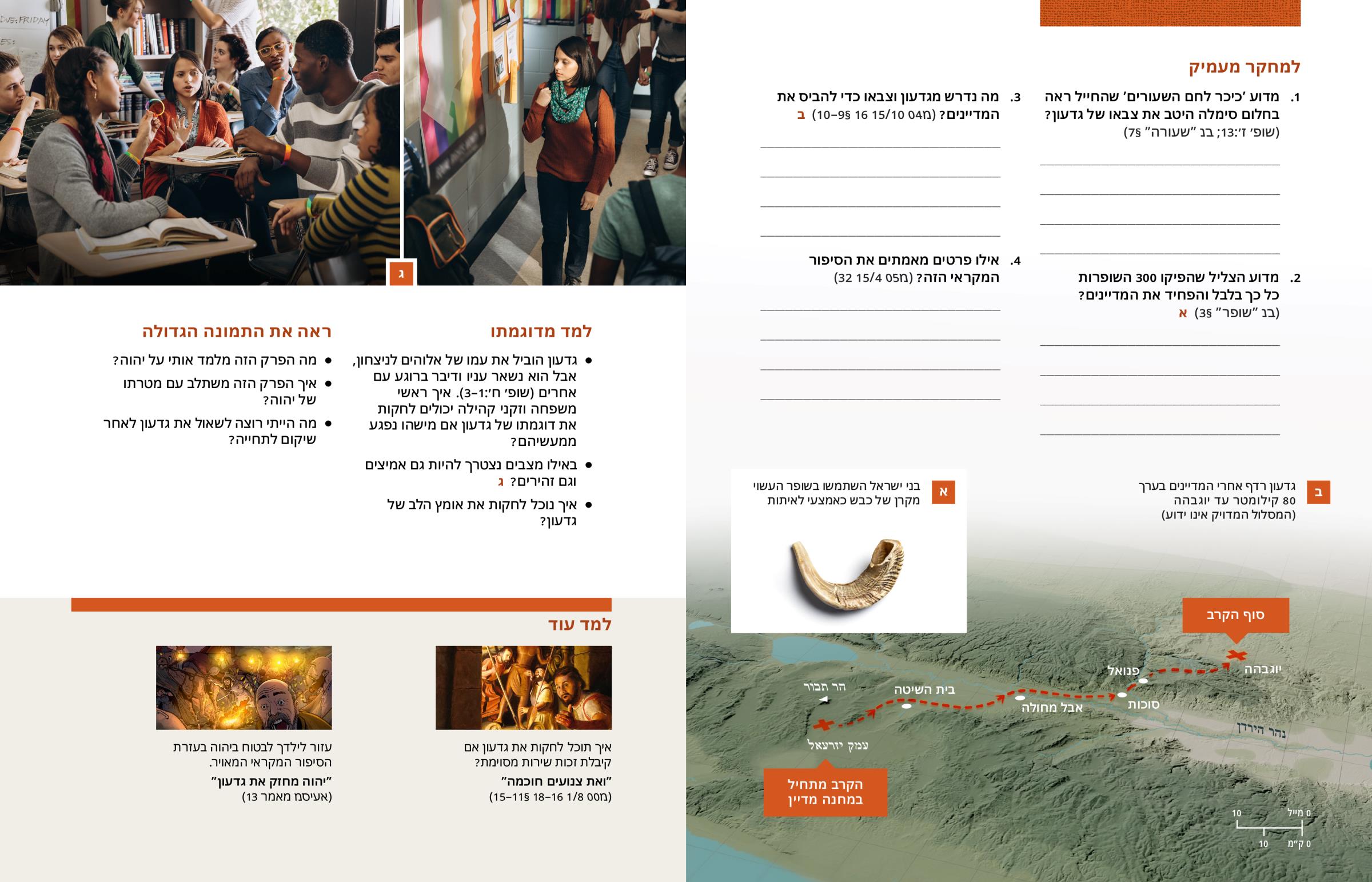 3. מה נדרש מגדעון וצבאו כדי להביס את המדיינים? (מ04 10/15 16 §9–10) ב
