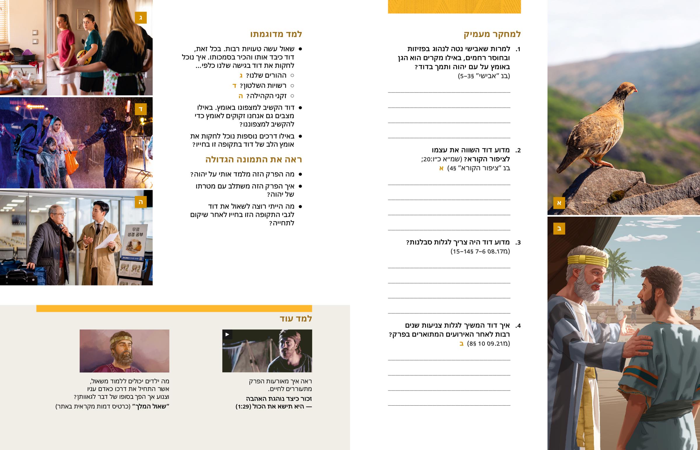2. מדוע דוד השווה את עצמו לציפור הקורא? (שמ״א כ״ו:20; בנ ”ציפור הקורא” §4) א