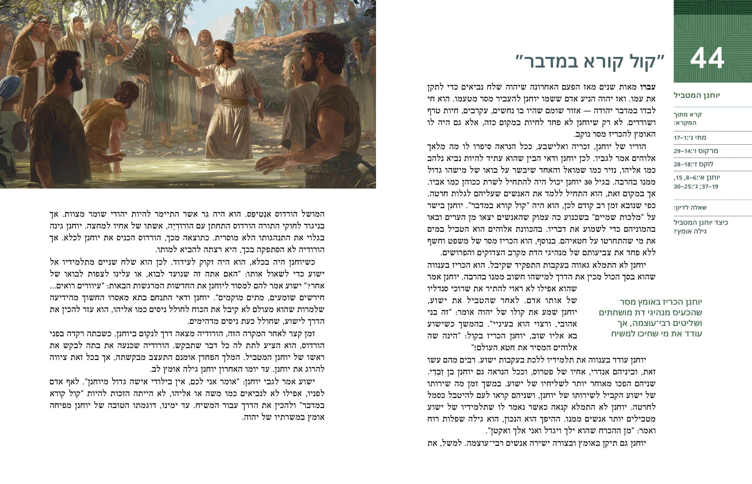 עברו מאות שנים מאז הפעם האחרונה שיהוה שלח נביאים כדי לתקן את עמו.‏ ואז יהוה הניע אדם ששמו יוחנן להעביר מסר מטעמו.‏ הוא חי לבדו במדבר יהודה — אזור שומם שהיו בו נחשים,‏ עקרבים,‏ חיות טרף ושודדים.‏ לא רק שיוחנן לא פחד לחיות במקום כזה,‏ אלא גם היה לו האומץ להכריז מסר נוקב.‏