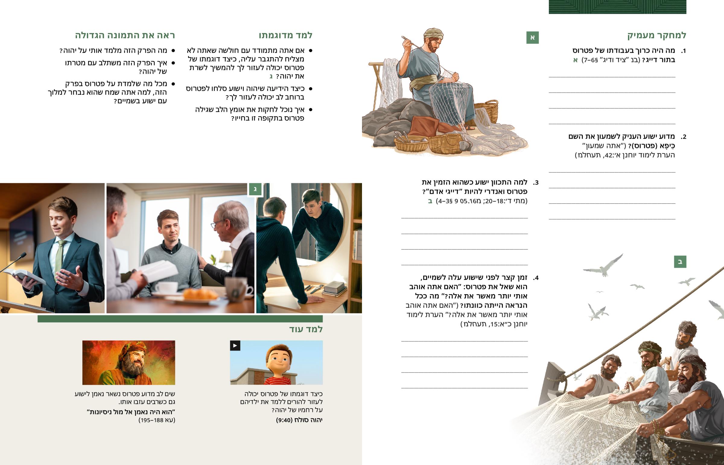 1. מה היה כרוך בעבודתו של פטרוס בתור דייג? (בנ ”ציד ודיג” §6–7) א