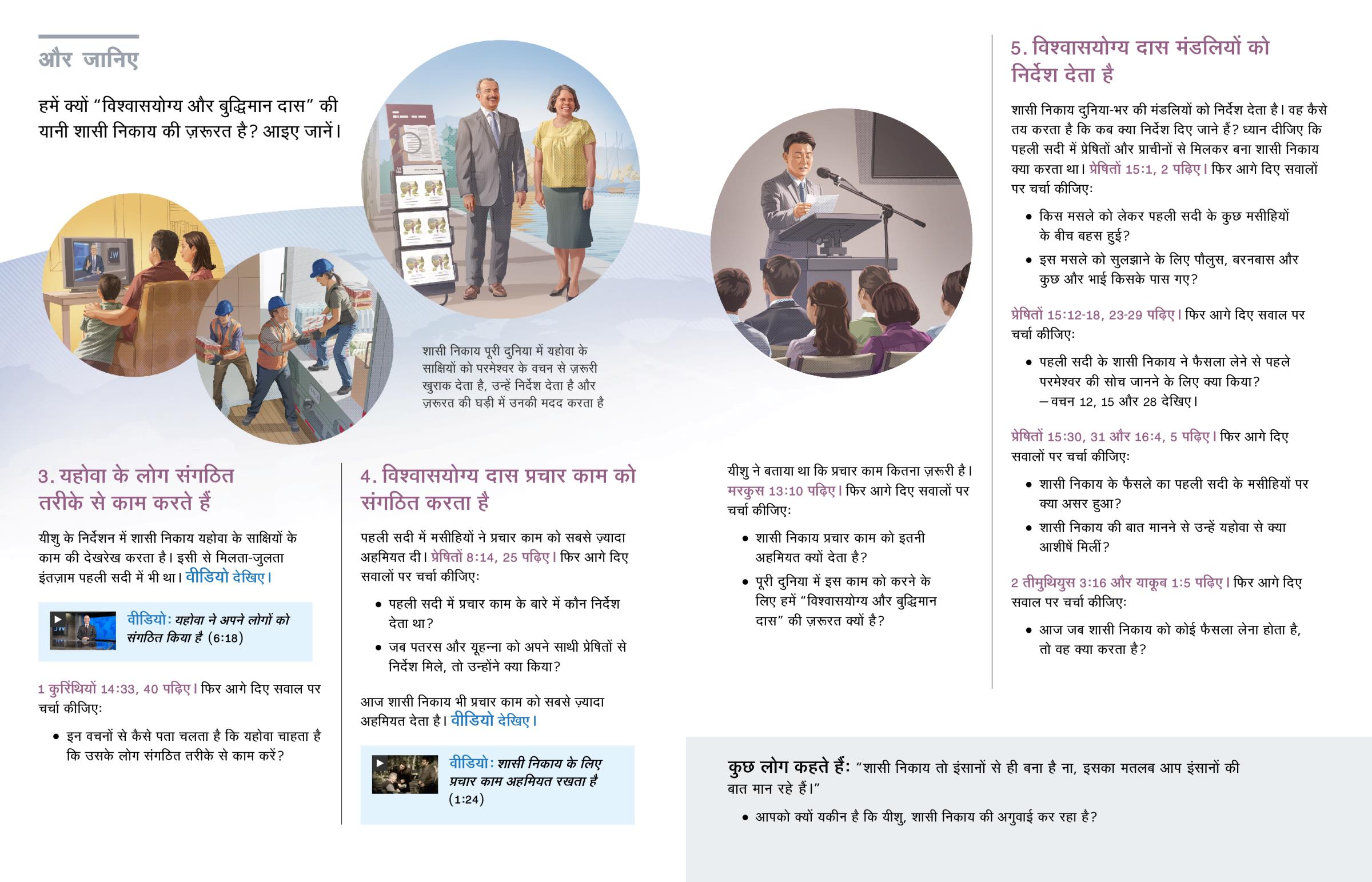 शासी निकाय दुनिया-भर की मंडलियों को निर्देश देता है। वह कैसे तय करता है कि कब क्या निर्देश दिए जाने हैं? ध्यान दीजिए कि पहली सदी में प्रेषितों और प्राचीनों से मिलकर बना शासी निकाय क्या करता था। प्रेषितों 15:1, 2 पढ़िए। फिर आगे दिए सवालों पर चर्चा कीजिए: