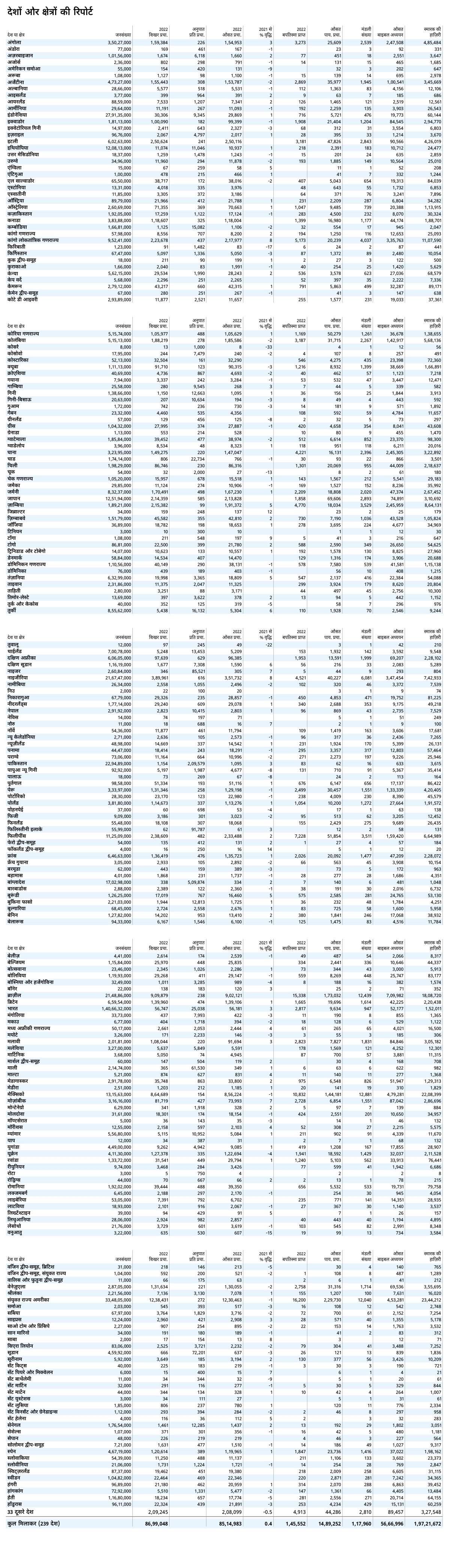 देशों और क्षेत्रों की रिपोर्ट
