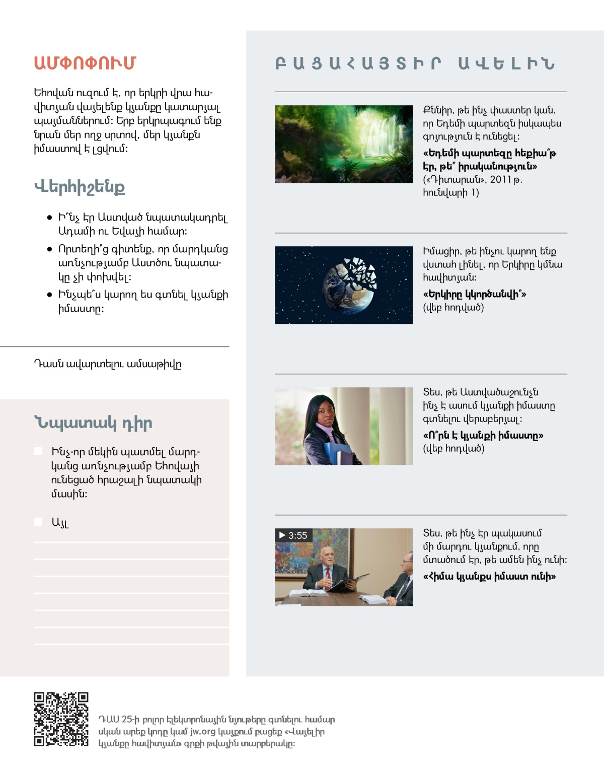 • Ի՞նչ է Աստված նպատակադրել մեզ համար