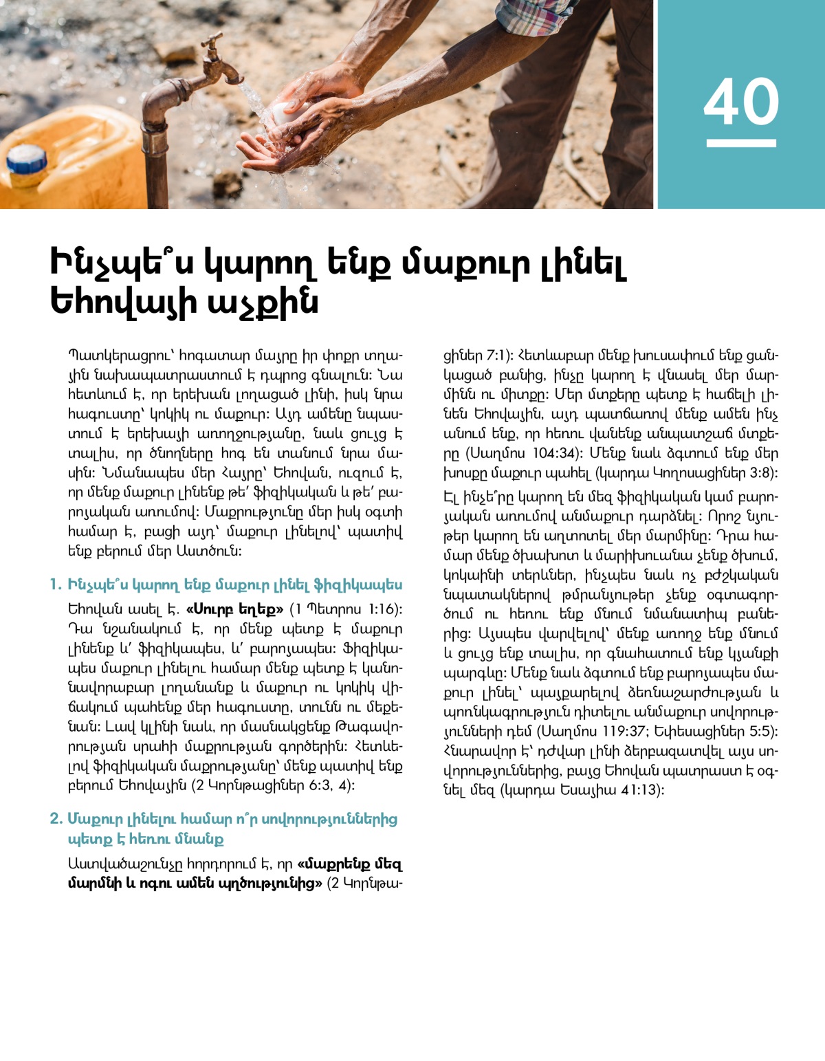 Երբ մեր մարմինը, միտքը և վարքը մաքուր են, դա հաճելի է Եհովային։