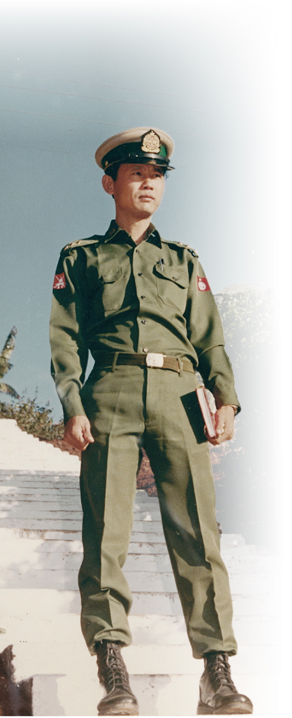 Երբ դարձա 21 տարեկան, գնացի բանակ։ Հաջորդ տարիների ընթացքում մասնակցեցի 20 մարտերի։ 1977-ին կոմունիստ խռովարարները հարձակվեցին մեր ճամբարի վրա, որը գտնվում էր Մուսեյ քաղաքի մոտ (Շան նահանգ)։ Կռիվը շարունակվեց 20 օր։ Ի վերջո մենք անցանք լայնամասշտաբ հակագրոհի, ու ես ոտք դրեցի ականի վրա... Նայեցի ոտքերիս, մերկ ոսկորներս էին մնացել։ Ծարավը խեղդում էր ինձ, միայն ուժեղ տաքություն էի զգում գոտկատեղիցս ներքև։ Բայց ես չէի վախեցել։ Ինձ անմիջապես տեղափոխեցին հոսպիտալ։ Չորս ամիս անց դուրս գրեցին ու տուն ուղարկեցին։