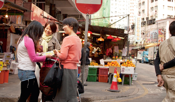 Շաու Կեյ Ուան, Հոնկոնգ։ Քարոզում են մի երիտասարդ կնոջ շուկայում