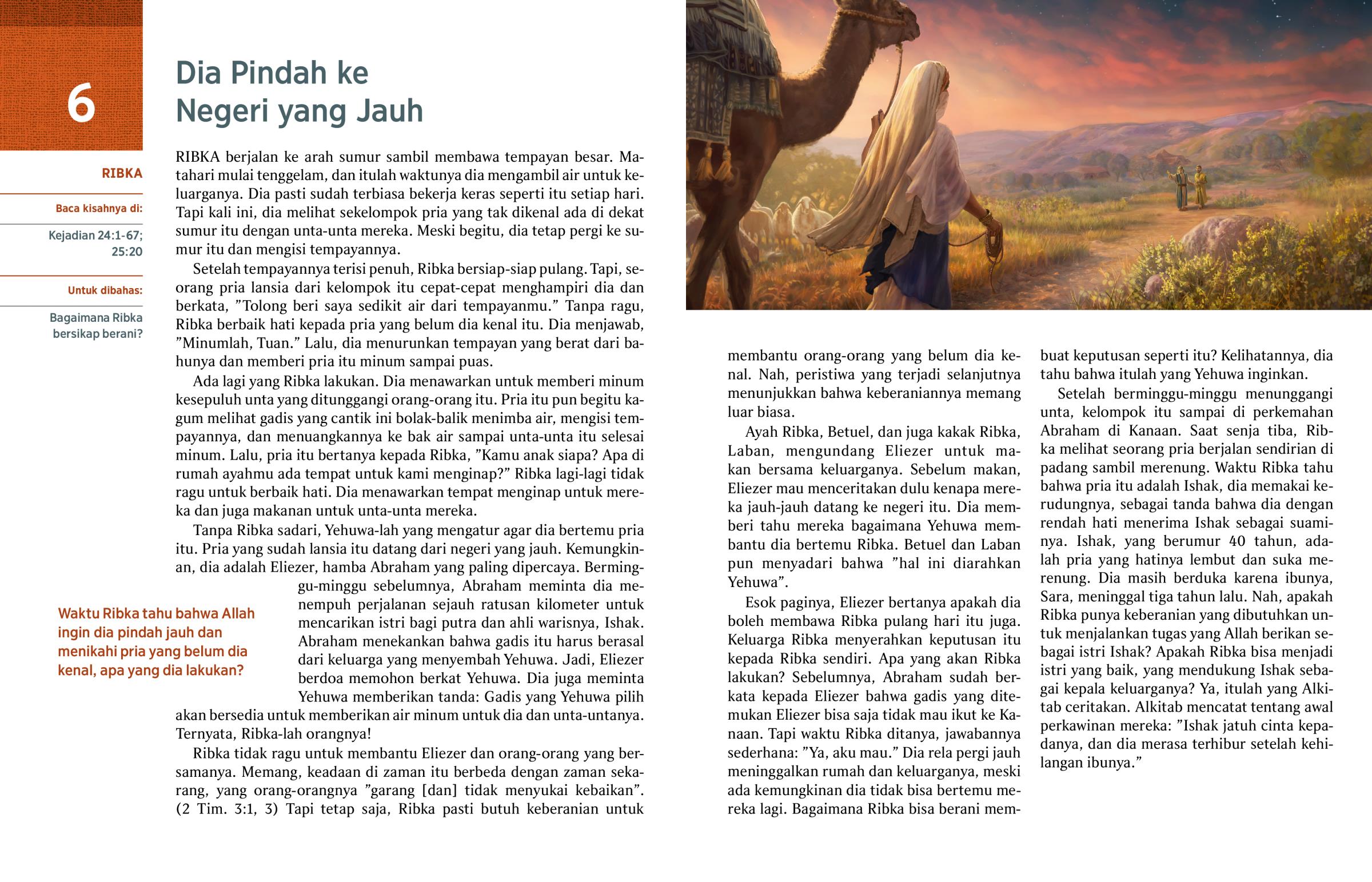 RIBKA berjalan ke arah sumur sambil membawa tempayan besar. Matahari mulai tenggelam, dan itulah waktunya dia mengambil air untuk keluarganya. Dia pasti sudah terbiasa bekerja keras seperti itu setiap hari. Tapi kali ini, dia melihat sekelompok pria yang tak dikenal ada di dekat sumur itu dengan unta-unta mereka. Meski begitu, dia tetap pergi ke sumur itu dan mengisi tempayannya.