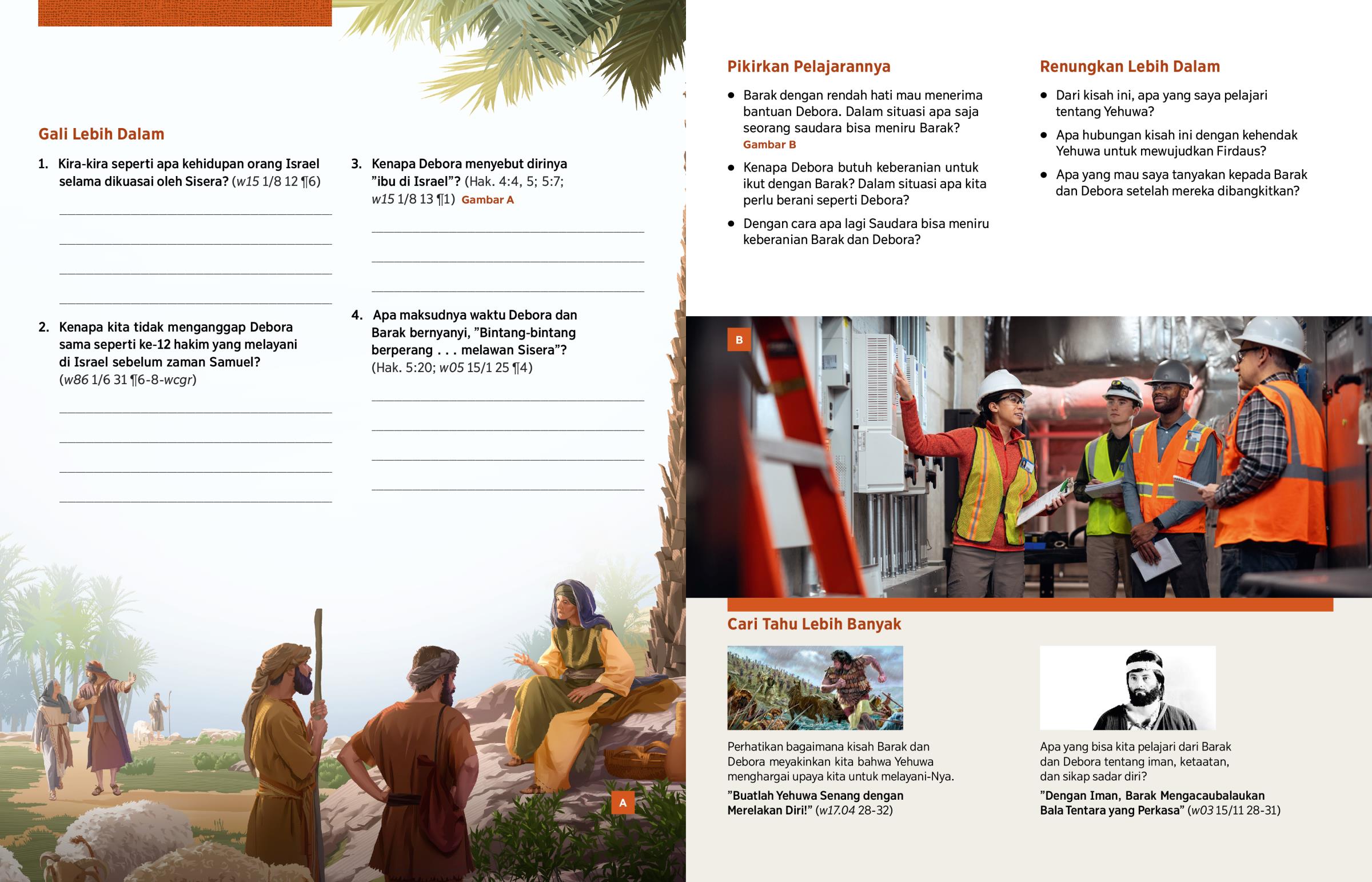 Barak dengan rendah hati mau menerima bantuan Debora. Dalam situasi apa saja seorang saudara bisa meniru Barak? Gambar B