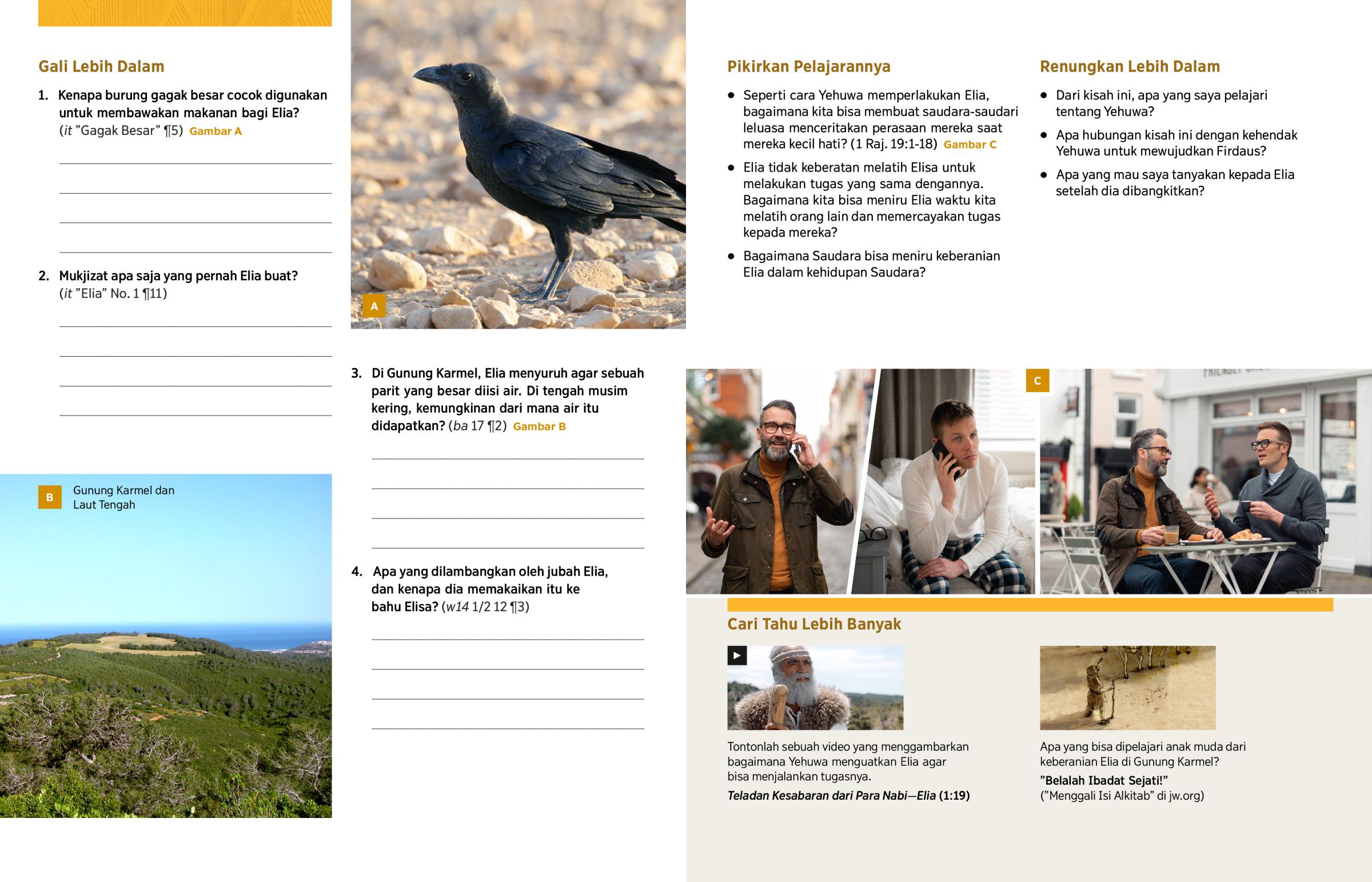 1. 1. Kenapa burung gagak besar cocok digunakan untuk membawakan makanan bagi Elia? (it ”Gagak Besar” ¶5) Gambar A