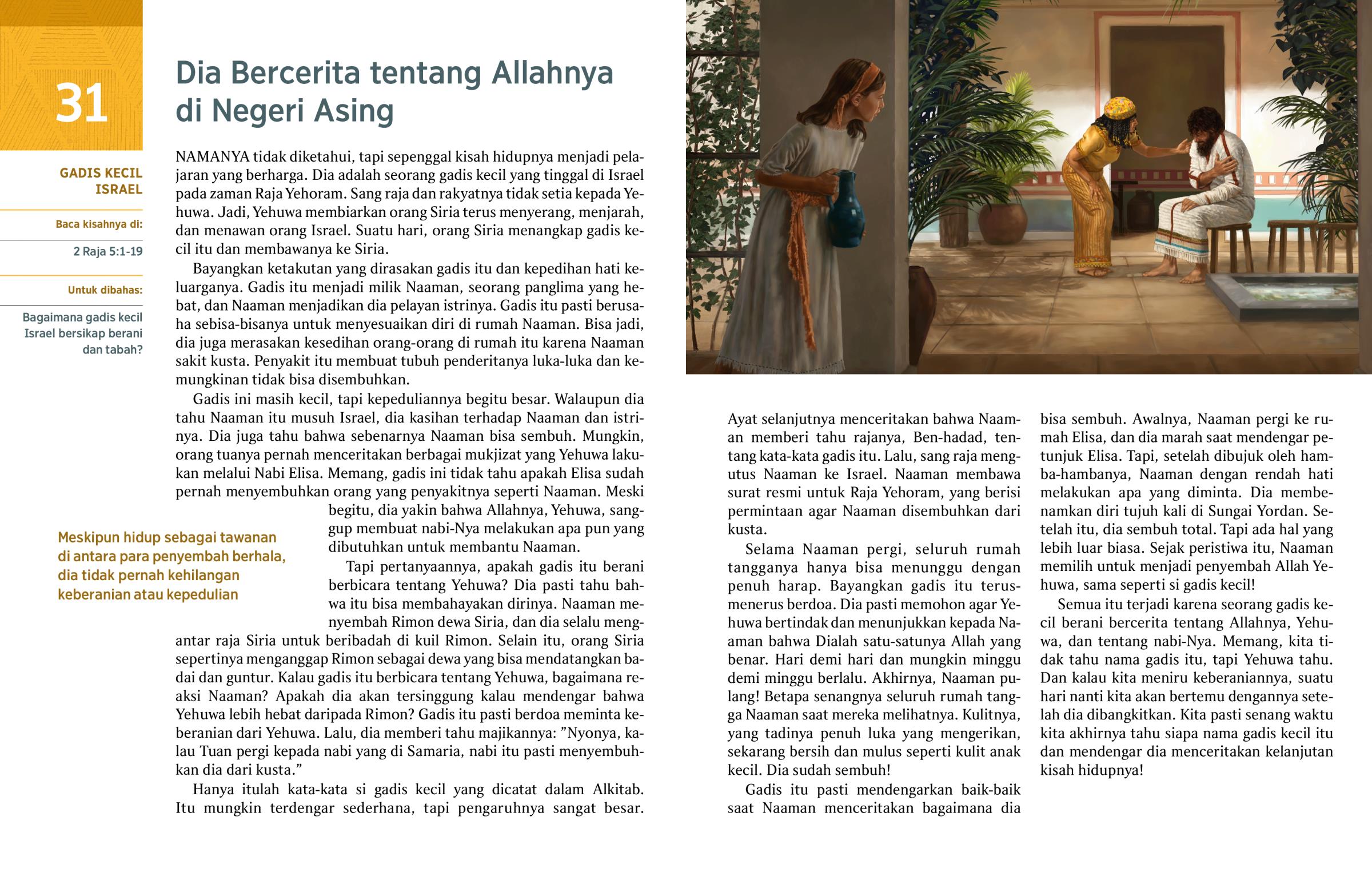 Gadis itu pasti mendengarkan baik-baik saat Naaman menceritakan bagaimana dia bisa sembuh. Awalnya, Naaman pergi ke rumah Elisa, dan dia marah saat mendengar petunjuk Elisa. Tapi, setelah dibujuk oleh hamba-hambanya, Naaman dengan rendah hati melakukan apa yang diminta. Dia membenamkan diri tujuh kali di Sungai Yordan. Setelah itu, dia sembuh total. Tapi ada hal yang lebih luar biasa. Sejak peristiwa itu, Naaman memilih untuk menjadi penyembah Allah Yehuwa, sama seperti si gadis kecil!