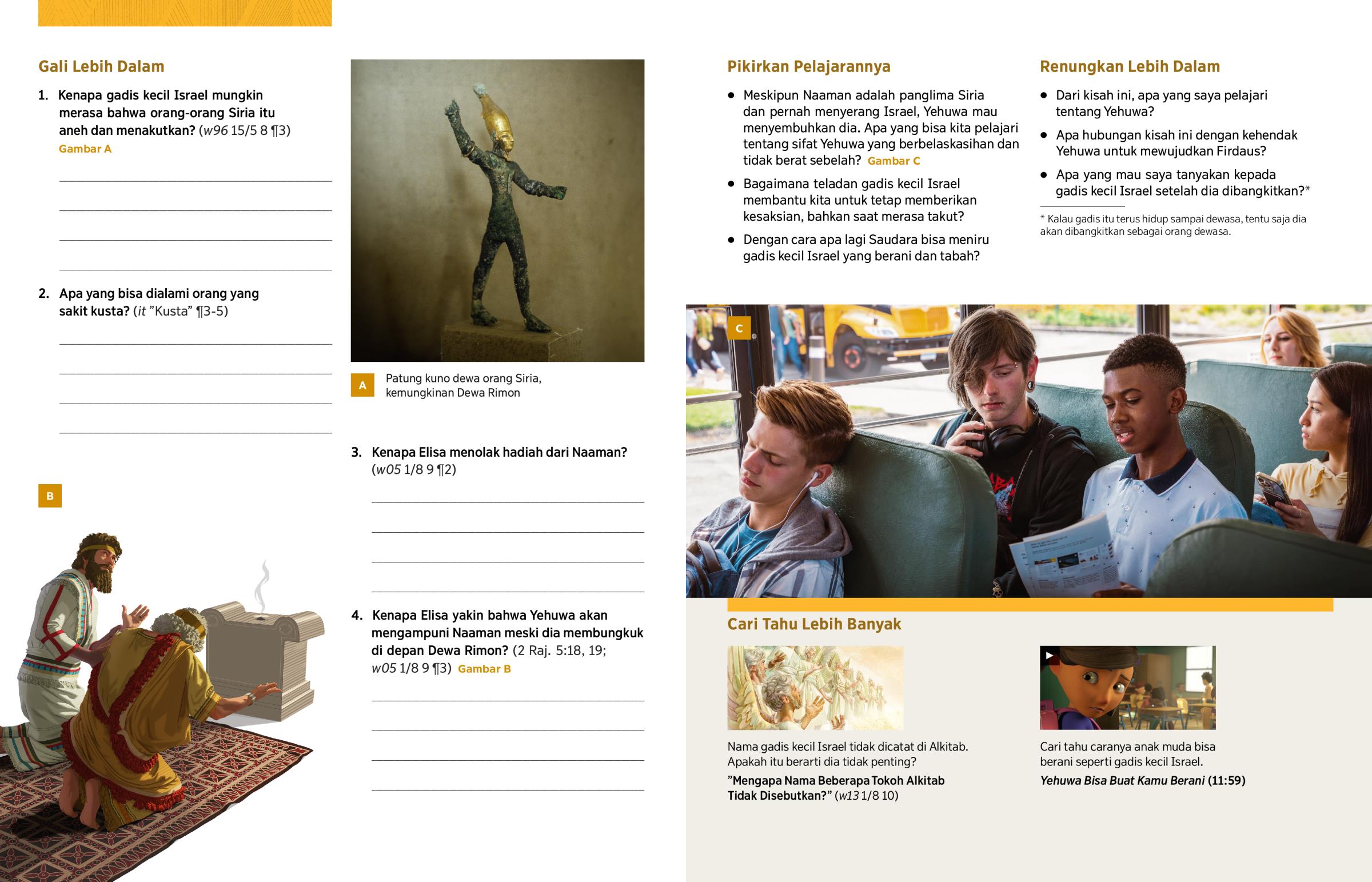 1. Kenapa gadis kecil Israel mungkin merasa bahwa orang-orang Siria itu aneh dan menakutkan? (w96 15/5 8 ¶3) Gambar A