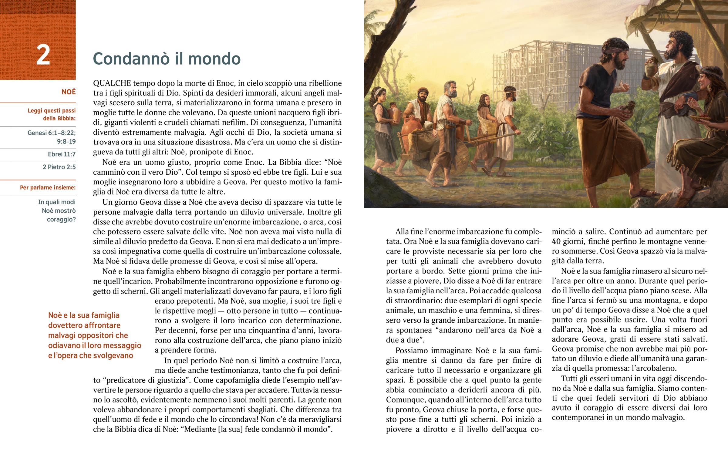 QUALCHE tempo dopo la morte di Enoc, in cielo scoppiò una ribellione tra i figli spirituali di Dio. Spinti da desideri immorali, alcuni angeli malvagi scesero sulla terra, si materializzarono in forma umana e presero in moglie tutte le donne che volevano. Da queste unioni nacquero figli ibridi, giganti violenti e crudeli chiamati nefilim. Di conseguenza, l’umanità diventò estremamente malvagia. Agli occhi di Dio, la società umana si trovava ora in una situazione disastrosa. Ma c’era un uomo che si distingueva da tutti gli altri: Noè, pronipote di Enoc.