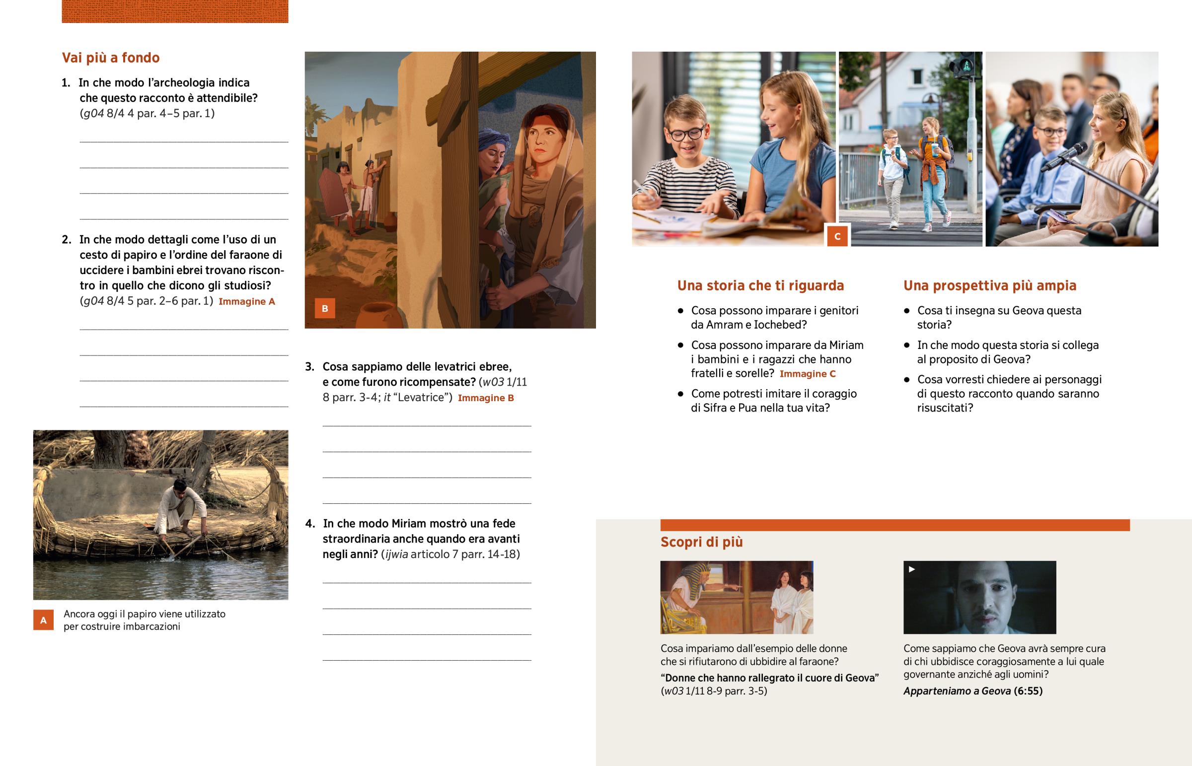 Geova ricompensò Amram, Iochebed e Miriam per la fede e per il coraggio che mostrarono? Certamente! Amram e Iochebed aiutarono i loro figli Miriam e Aronne a diventare fedeli servitori di Geova ed ebbero la possibilità di vedere che Geova stava proteggendo Mosè. La Bibbia non dice se vissero abbastanza a lungo da vedere che tipo di uomo diventò Mosè (Eso. 6:20). Ma Miriam e Aronne sicuramente sì: furono testimoni di come Geova impiegò Mosè per fare cose straordinarie. Miriam, Aronne e Mosè mostrarono una fede e un coraggio notevoli. Nel prossimo capitolo scopriremo in che modo venne cresciuto Mosè e come decise di servire Geova.