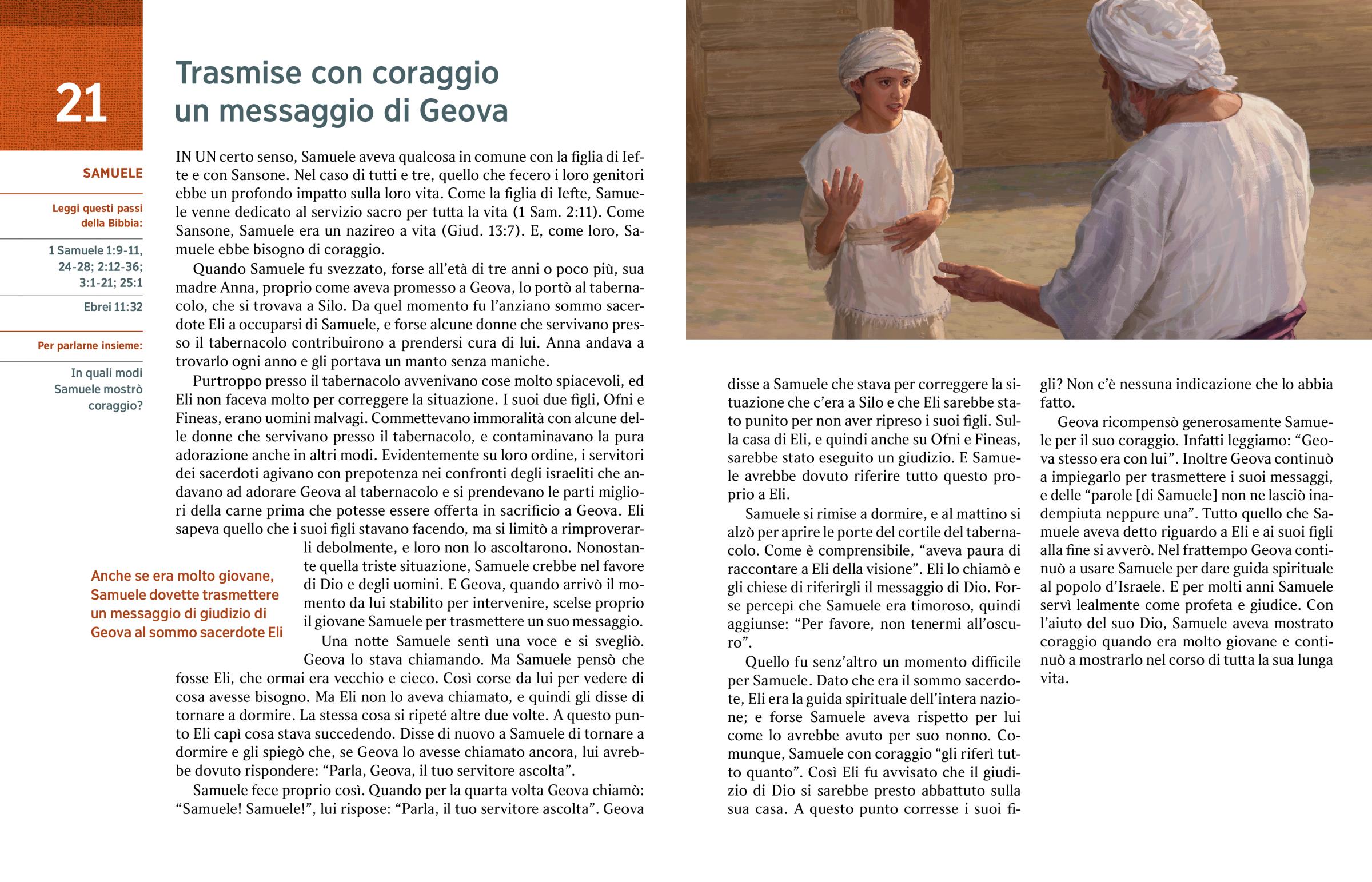 Geova ricompensò generosamente Samuele per il suo coraggio. Infatti leggiamo: “Geova stesso era con lui”. Inoltre Geova continuò a impiegarlo per trasmettere i suoi messaggi, e delle “parole [di Samuele] non ne lasciò inadempiuta neppure una”. Tutto quello che Samuele aveva detto riguardo a Eli e ai suoi figli alla fine si avverò. Nel frattempo Geova continuò a usare Samuele per dare guida spirituale al popolo d’Israele. E per molti anni Samuele servì lealmente come profeta e giudice. Con l’aiuto del suo Dio, Samuele aveva mostrato coraggio quando era molto giovane e continuò a mostrarlo nel corso di tutta la sua lunga vita.
