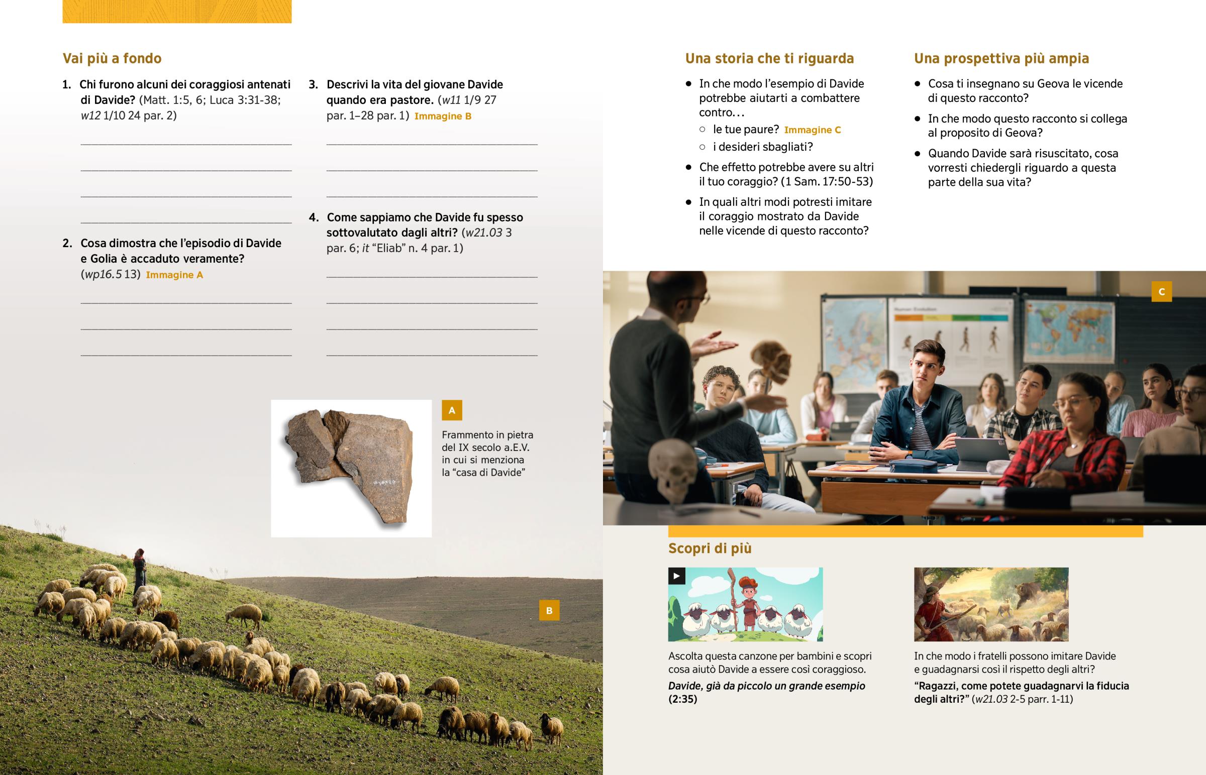 3. Descrivi la vita del giovane Davide quando era pastore. (w11 1/9 27 par. 1–28 par. 1) Immagine B