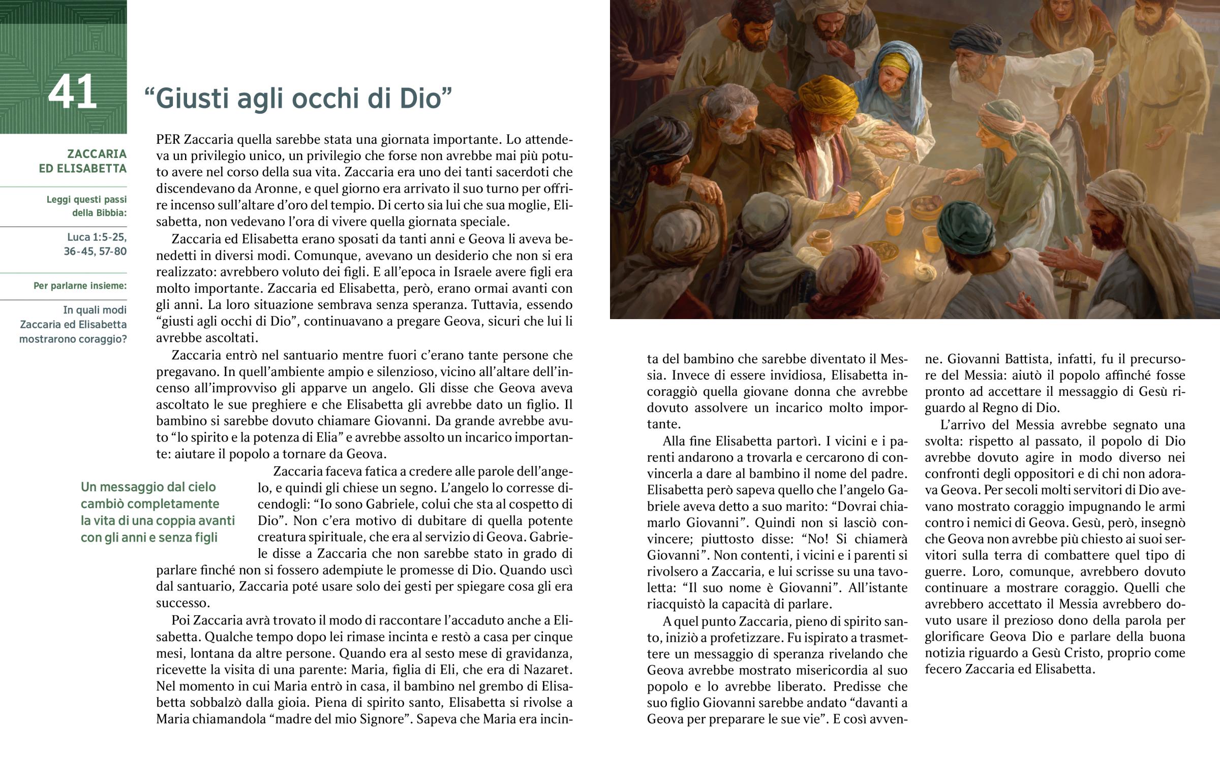 Zaccaria entrò nel santuario mentre fuori c’erano tante persone che pregavano. In quell’ambiente ampio e silenzioso, vicino all’altare dell’incenso all’improvviso gli apparve un angelo. Gli disse che Geova aveva ascoltato le sue preghiere e che Elisabetta gli avrebbe dato un figlio. Il bambino si sarebbe dovuto chiamare Giovanni. Da grande avrebbe avuto “lo spirito e la potenza di Elia” e avrebbe assolto un incarico importante: aiutare il popolo a tornare da Geova.