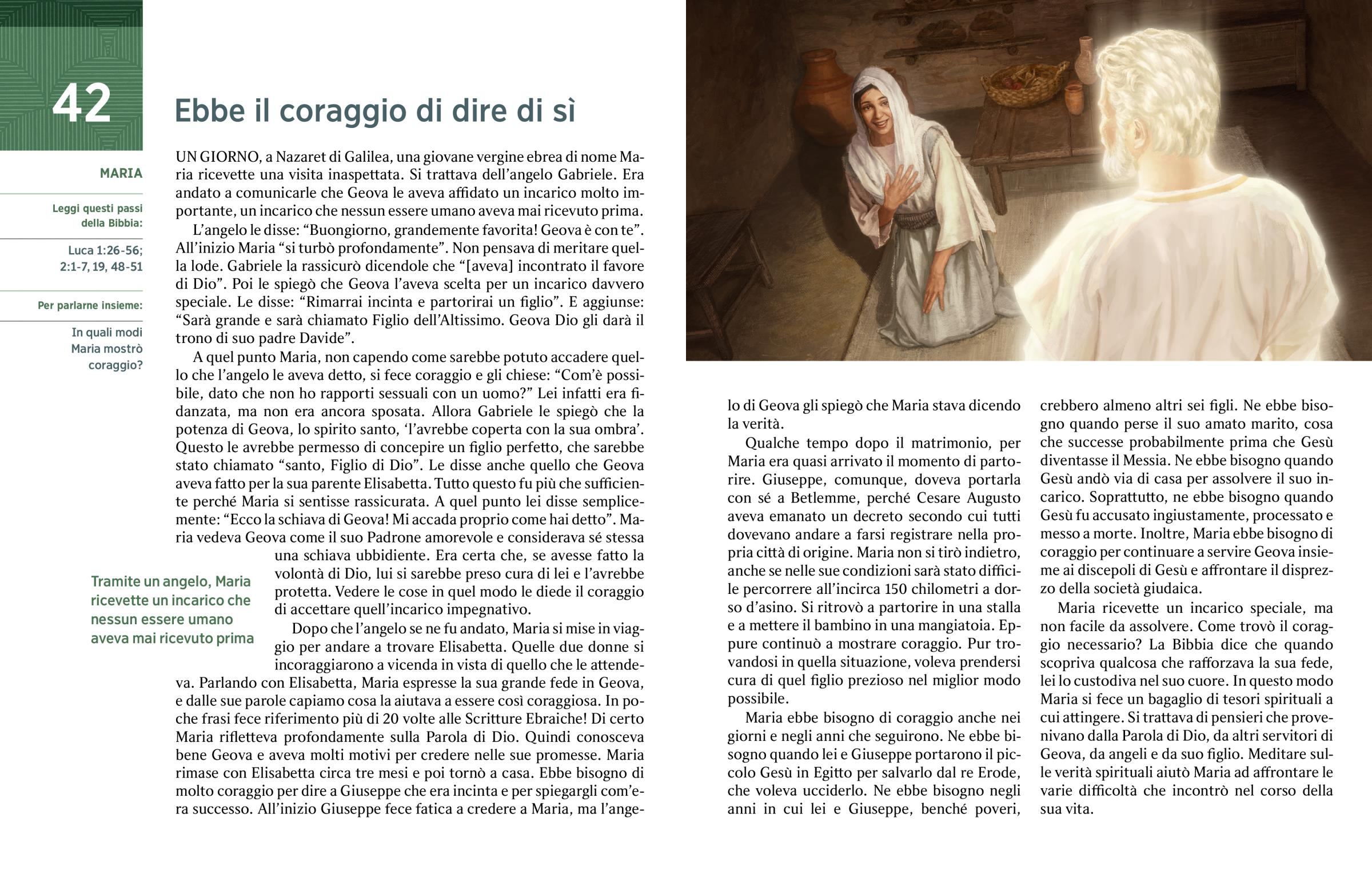 Maria ricevette un incarico speciale, ma non facile da assolvere. Come trovò il coraggio necessario? La Bibbia dice che quando scopriva qualcosa che rafforzava la sua fede, lei lo custodiva nel suo cuore. In questo modo Maria si fece un bagaglio di tesori spirituali a cui attingere. Si trattava di pensieri che provenivano dalla Parola di Dio, da altri servitori di Geova, da angeli e da suo figlio. Meditare sulle verità spirituali aiutò Maria ad affrontare le varie difficoltà che incontrò nel corso della sua vita.