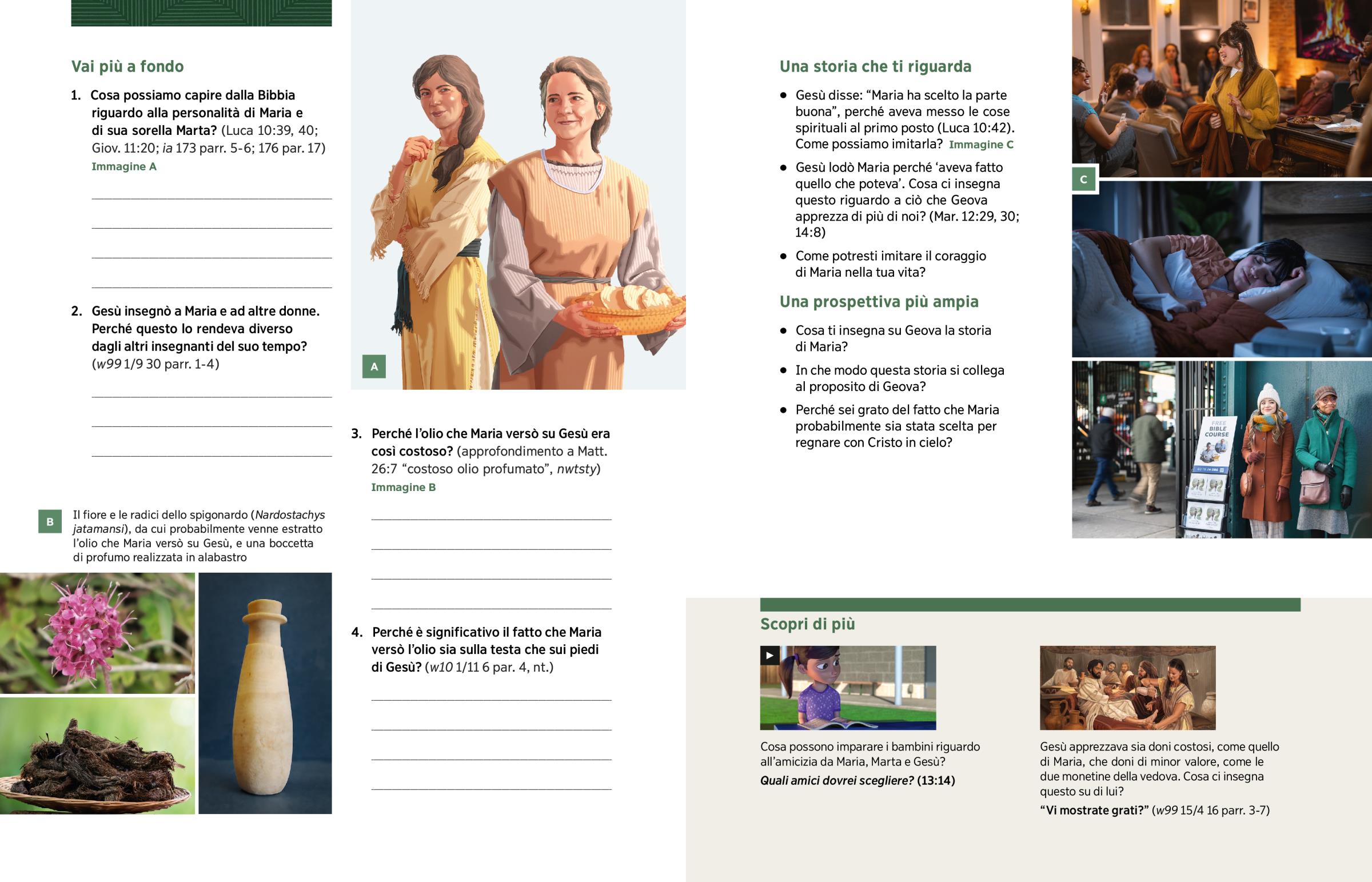 Gesù disse: “Maria ha scelto la parte buona”, perché aveva messo le cose spirituali al primo posto (Luca 10:42). Come possiamo imitarla? Immagine C