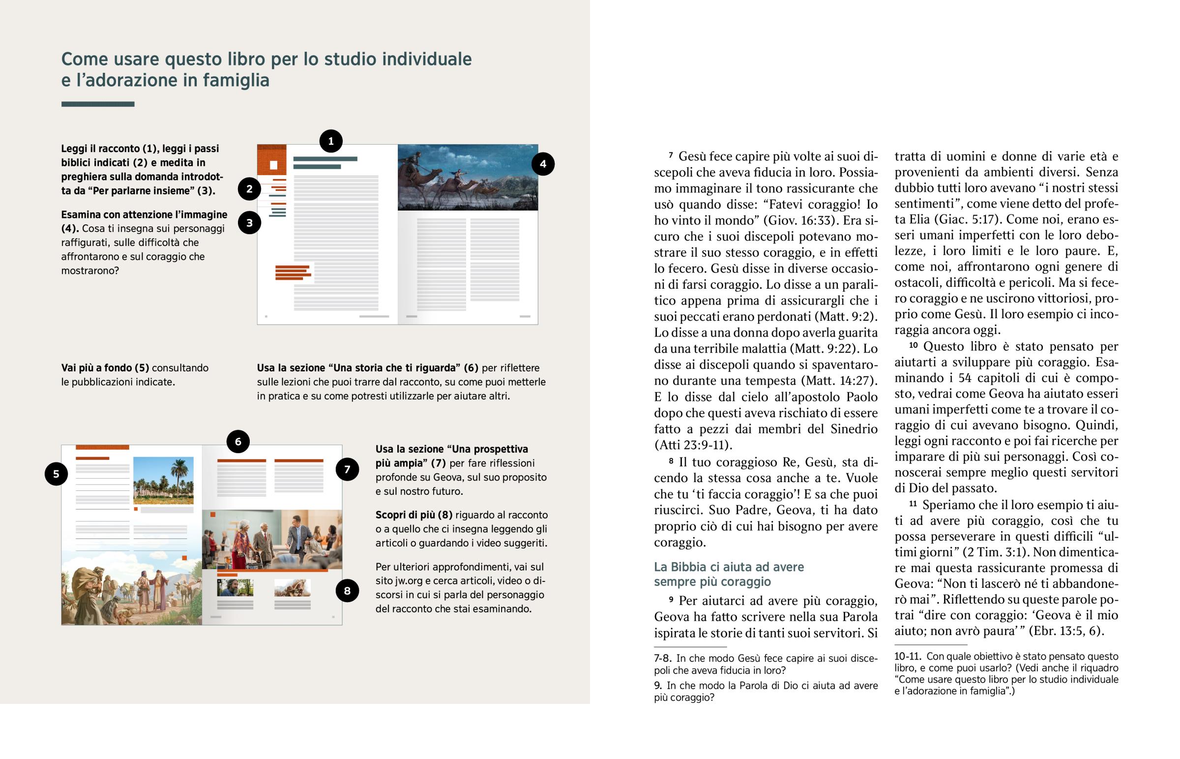 10 Questo libro è stato pensato per aiutarti a sviluppare più coraggio. Esaminando i 54 capitoli di cui è composto, vedrai come Geova ha aiutato esseri umani imperfetti come te a trovare il coraggio di cui avevano bisogno. Quindi, leggi ogni racconto e poi fai ricerche per imparare di più sui personaggi. Così conoscerai sempre meglio questi servitori di Dio del passato.