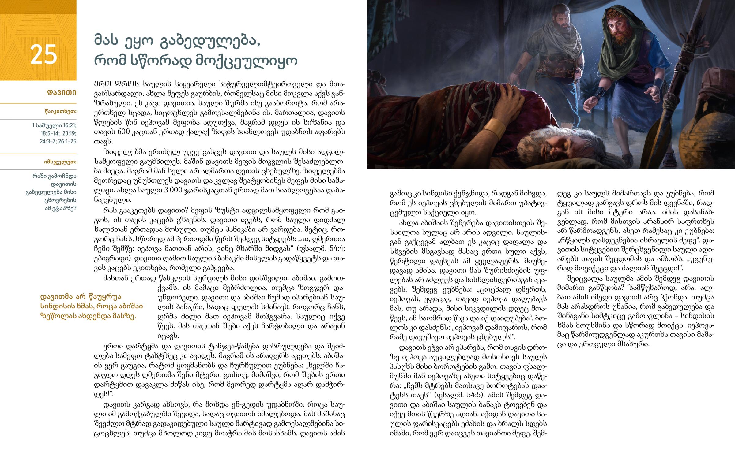 დავითმა გაბედულება და შინაგანი სიმტკიცე გამოავლინა – მან მოუსმინა სინდისის ხმას და ის გააკეთა, რაც სწორი იყო. ჩვენ რა სიტუაციებში შეიძლება დაგვჭირდეს გაბედულებისა და შინაგანი სიმტკიცის გამოჩენა, რომ სწორი გადაწყვეტილება მივიღოთ?